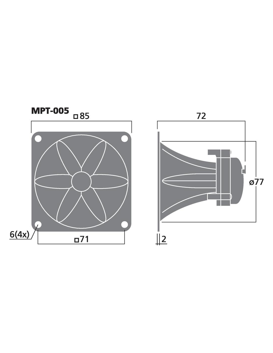 impedancia z :> 1.000 Ω:1:0,m todo de transmisi n:cable:2:0,rango de frecuencias:4.000-20.000 Hz:3:0,potencia nominal rms :60 W:4:0,pico de potencia musical max :115 W (sistema 8 Ω) 225 W (sistema 4 Ω):5:0,sensibilidad:94 dB/W/m:6:0,voltaje m x :~ 30 V:7:0,corte de montaje:Ø 77 mm:8:0,profundidad de montaje:72 mm:9:0,espacio entre agujeros eje x:71 mm:10:0,espacio entre agujeros eje y:71 mm:11:0,dimensiones:85 x 85 x 72 mm:12:0,ancho:85 mm:13:0,altura:85 mm:14:0,profundidad:72 mm:15:0,color:negro:16:0,temp ambiente admis :0 a 40 °C:17:0,peso:0,055 kg:18:0,uds por embalaje:1:19:0,dimensiones del paquete b x h x p :0,085 x 0,07 x 0,085 m:20:0,peso bruto:0,057 kg:21:0,peso neto:0,055 kg:22:0,peso neto:0,055 kg:23:0