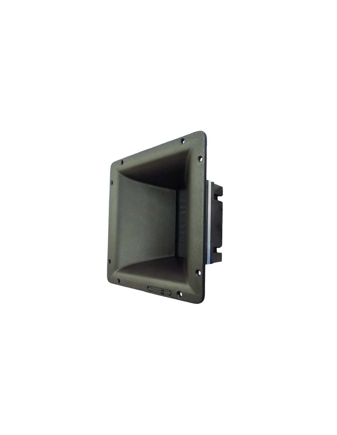 ESPECIFICACIONES TÉCNICAS Impedancia nominal 8 Ohm Resistencia electrica 4.9 ohm Potencia admisible 120 W AES por encima 1 kHz Potencia programa 240 W por encima 1 kHz Sensibilidad 104 dB 1 W @ 1 m Rango de frecuencias 1000-23000 Hz Frecuencia de cruce recom. 1 kHz o superior (12dB/oct pend. min.) Material diafragma Kapton DETALLES DE CONSTRUCCIÓN Dimensiones totales 230 x 230 x 152 mm // 9.05 x 9.05 x 5.98 in Peso neto 3.55 kg / 7.81 lb Peso total 3.9 kg 8.6 lb Imán Neodimio