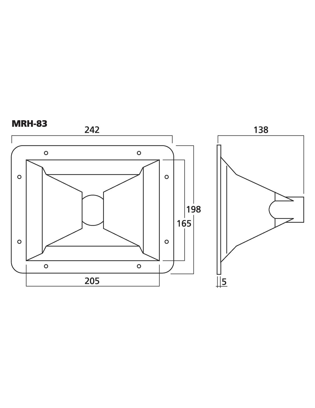 descripci n:Pabellón de medios-agudos:1:0,material:Plástico:2:0,rango de frecuencias:1.800-18.000 Hz:3:0,frecuencia de corte:1.800 Hz:4:0, ngulo de dispersi n vert hor :60°/90°:5:0, ngulo de radiaci n vertical:60°:6:0, ngulo de radiaci n horizontal:90°:7:0,corte de montaje:205 x 165 mm:8:0,profundidad de montaje:135 mm:9:0,dimensiones:242 x 198 x 138 mm:10:0,altura:198 mm:11:0,ancho:242 mm:12:0,profundidad:138 mm:13:0,peso:270 g:14:0,peso neto:0,27 kg:15:0