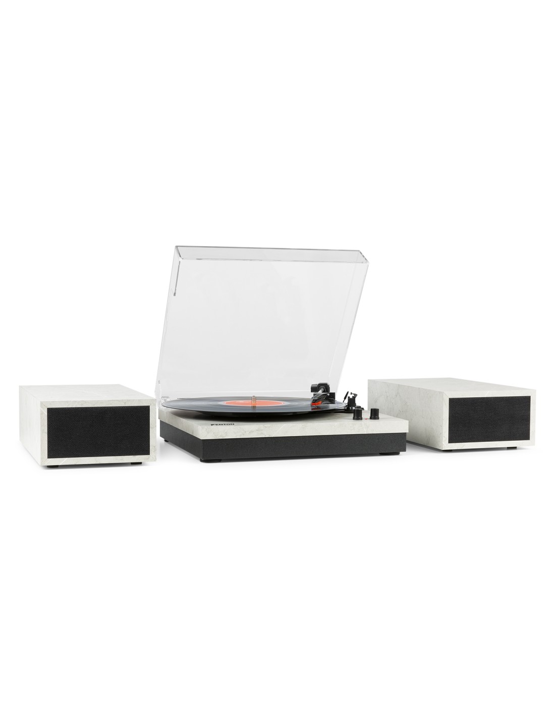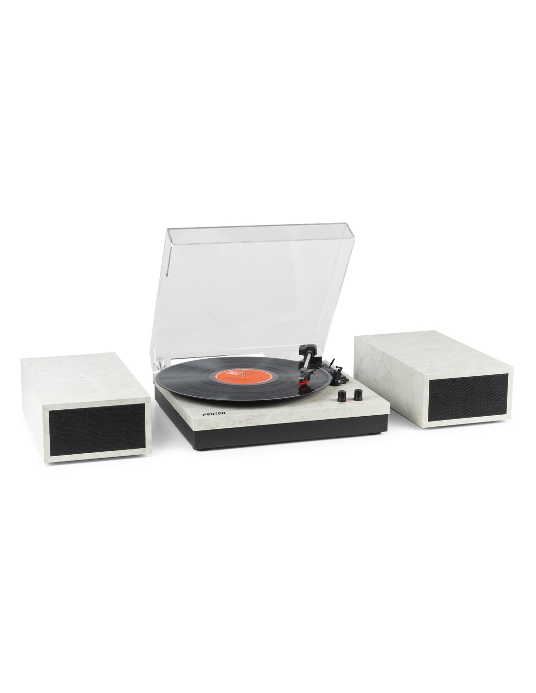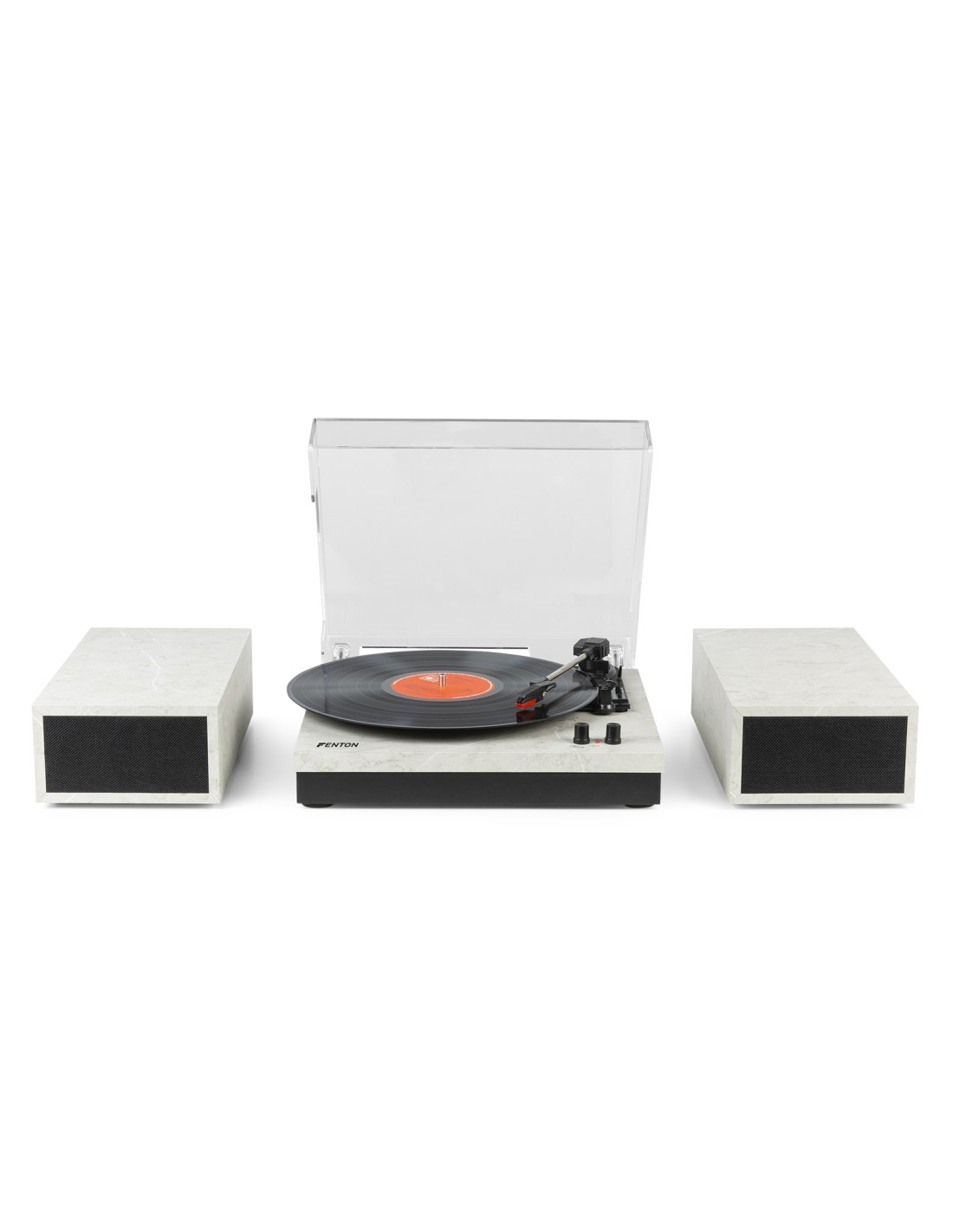 El Fenton RP165 con BT es un reproductor de diseño simple y elegante que incorpora amplificador integrado. Reproduce tus vinilos con gran calidad ajustando el volumen de los dos altavoces incorporados. Estos altavoces estereo de 50 watios reproducen la musica de tus vinilos (33 1/3, 45, 78 RPM) o tu musica a traves de BT desde cualquier dispositivo habilitado.