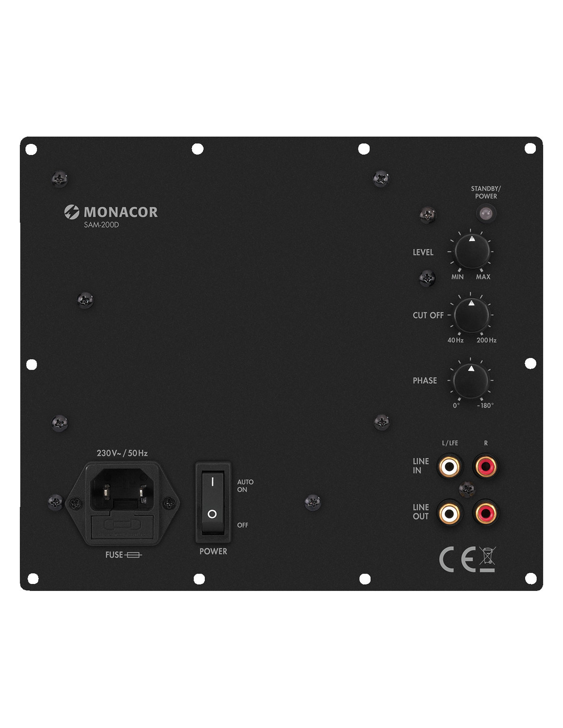 pico de potencia de salida:280 W:1:0,potencia nominal:200 W:2:0,potencia nominal a 4 :200 W:3:0,potencia nominal a 8 :100 W:4:0,canales:1:5:0,entradas:7 V máx.:6:0,factor de atenuaci n:26,6:7:0,rango de frecuencias:20 Hz - (var. 40-200 Hz):8:0,filtro crossover:18 dB/oct.:9:0,relaci n se al ruido:> 70 dB:10:0,thd:< 0,1 %:11:0,alimentaci n:˜ 230 V/50 Hz/330 VA:12:0,voltaje de corriente:~ 230 V:13:0,frecuencia de la corriente:50 Hz:14:0,consumo funcionamiento:330 VA:15:0,consumo standby:< 0,5 W:16:0,temp ambiente admis :0 a 40 °C:17:0,ancho:178 mm:18:0,altura:204 mm:19:0,profundidad:80 mm:20:0,peso:1,05 kg:21:0,conexiones:1x RCA (entrada de línea), 1x RCA (salida de línea):22:0,dimensiones del paquete b x h x p :0,18 x 0,08 x 0,205 m:23:0,peso bruto:1,403 kg:24:0,peso neto:1,051 kg:25:0,peso neto:1,051 kg:26:0
