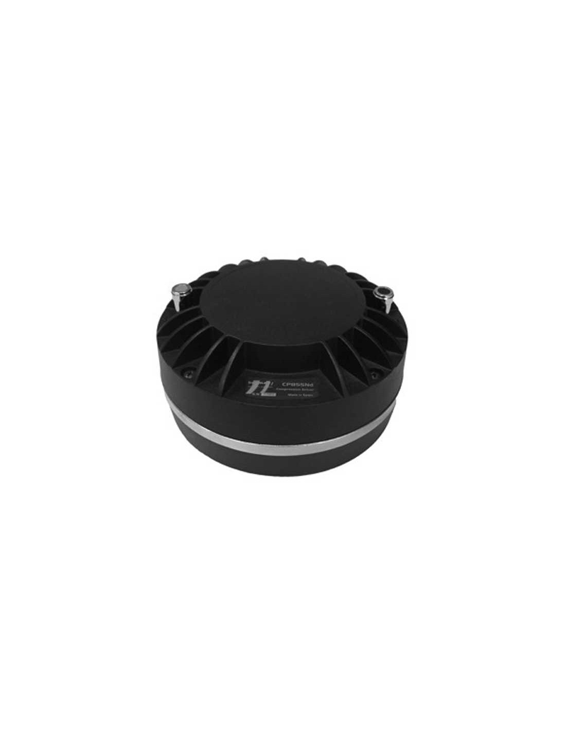 ESPECIFICACIONES TÉCNICAS Diametro de garganta 36 mm 1.4 in Impedancia nominal 8 Ohm Impedancia mínima 6.6 ohm @ 5.3 kHz Re 5.6 ohm Potencia admisible 100 W AES por encima 500 Hz Potencia programa 200 W por encima 500 Hz Sensibilidad 112 dB 1 W @ 1 m acoplado a bocina Rango de frecuencias 500-20000 Hz Frecuencia de cruce recom. 500 Hz o superior (12dB/oct pend. min.) Diámetro Bobina 100 mm 4 in Densidad de flujo 2 T Factor BL 16.5 N/A Material de la membrana Titanio