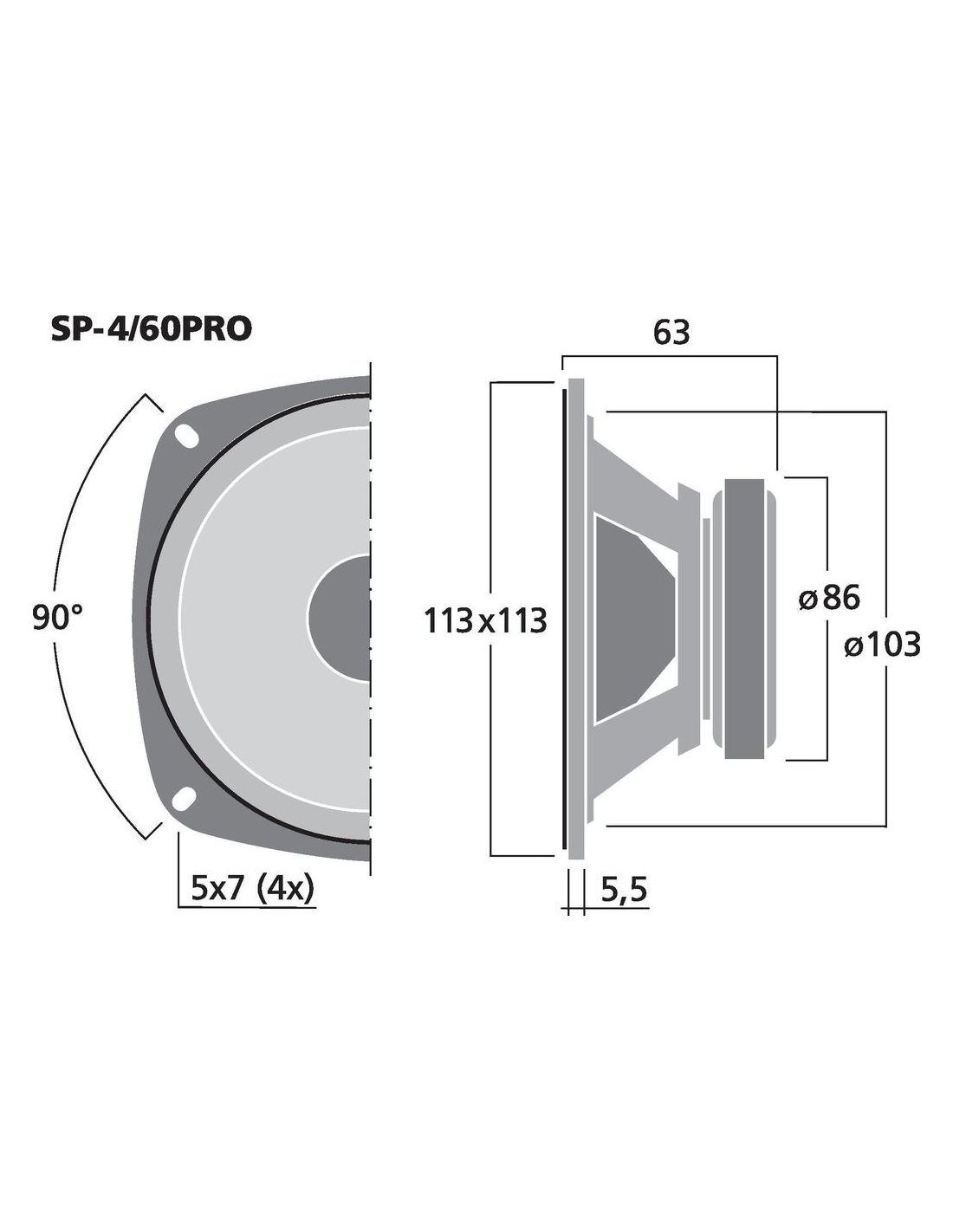 impedancia z :8 Ω:1:0,m todo de transmisi n:cable:2:0,rango de frecuencias:f3-10.000 Hz:3:0,frecuencia de resonancia fs :92 Hz:4:0,potencia nominal rms :30 W:5:0,pico de potencia musical max :60 W:6:0,sensibilidad:90 dB/W/m:7:0,pliegue susp cms :0,47 mm/N:8:0,masa m vil mms :6,3 g:9:0,factor q mec qms :5,35:10:0,factor q el ctrico qes :0,67:11:0,factor q total qts :0,60:12:0,volumen equivalente vas :3,0 l:13:0,resistencia dc re :6,76 Ω:14:0,factor de fuerza bxl :5,85 Tm:15:0,inductancia de la membrana le :0,3 mH:16:0,di metro de la membrana:Ø 25 mm:17:0,soporte de la membrana:Kapton:18:0,excursi n lineal xmax :± 2,3 mm:19:0,superficie de emisi n sd :68 cm2:20:0,peso del im n:370 g:21:0,di metro del im n:Ø 86 mm:22:0,corte de montaje:Ø 103 mm:23:0,profundidad de montaje:57,5 mm:24:0,dimensiones:113 x 113 x 63 mm:25:0,ancho:113 mm:26:0,altura:113 mm:27:0,profundidad:63 mm:28:0,color:negro:29:0,temp ambiente admis :0 a 40 °C:30:0,peso:0,9 kg:31:0,uds por embalaje:1:32:0,tipo de altavoz:4":33:0,dimensiones del paquete b x h x p :0,135 x 0,1 x 0,135 m:34:0,peso bruto:1,01 kg:35:0,peso neto:0,888 kg:36:0,peso neto:0,888 kg:37:0