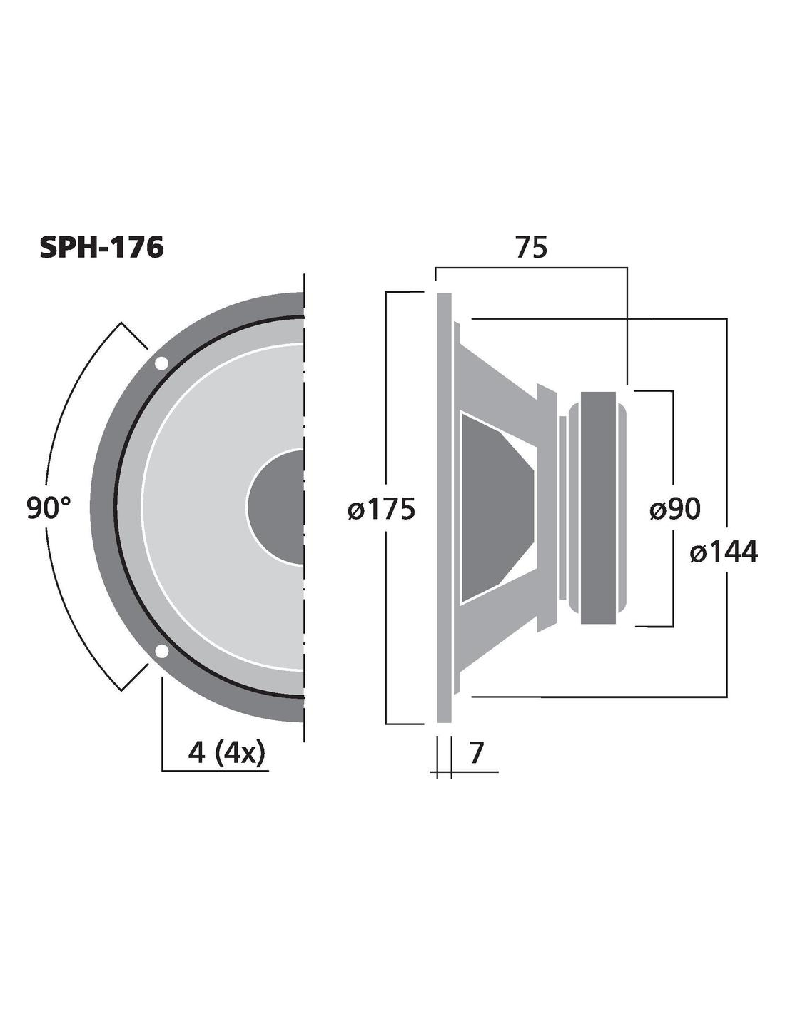 impedancia z :8 Ω:1:0,m todo de transmisi n:cable:2:0,rango de frecuencias:f3-4.500 Hz:3:0,frecuencia de resonancia fs :39 Hz:4:0,potencia nominal rms :70 W:5:0,pico de potencia musical max :120 W:6:0,sensibilidad:90 dB/W/m:7:0,pliegue susp cms :1,01 mm/N:8:0,masa m vil mms :14 g:9:0,factor q mec qms :2,27:10:0,factor q el ctrico qes :0,44:11:0,factor q total qts :0,37:12:0,volumen equivalente vas :27 l:13:0,resistencia dc re :6,6 Ω:14:0,factor de fuerza bxl :7,70 Tm:15:0,inductancia de la membrana le :0,75 mH:16:0,di metro de la membrana:Ø 25 mm:17:0,soporte de la membrana:Aluminio:18:0,excursi n lineal xmax :± 5,5 mm:19:0,superficie de emisi n sd :140 cm2:20:0,peso del im n:450 g:21:0,di metro del im n:Ø 90 mm:22:0,corte de montaje:Ø 144 mm:23:0,profundidad de montaje:68 mm:24:0,dimensiones:Ø 175 x 75 mm:25:0,di metro exterior:Ø 175 mm:26:0,ancho:Ø 175 mm:27:0,altura:Ø 175 mm:28:0,profundidad:75 mm:29:0,color:negro:30:0,temp ambiente admis :0 a 40 °C:31:0,peso:1,23 kg:32:0,uds por embalaje:1:33:0,tipo de altavoz:6,75":34:0,dimensiones del paquete b x h x p :0,195 x 0,1 x 0,195 m:35:0,peso bruto:1,34 kg:36:0,peso neto:1,23 kg:37:0,peso neto:1,23 kg:38:0