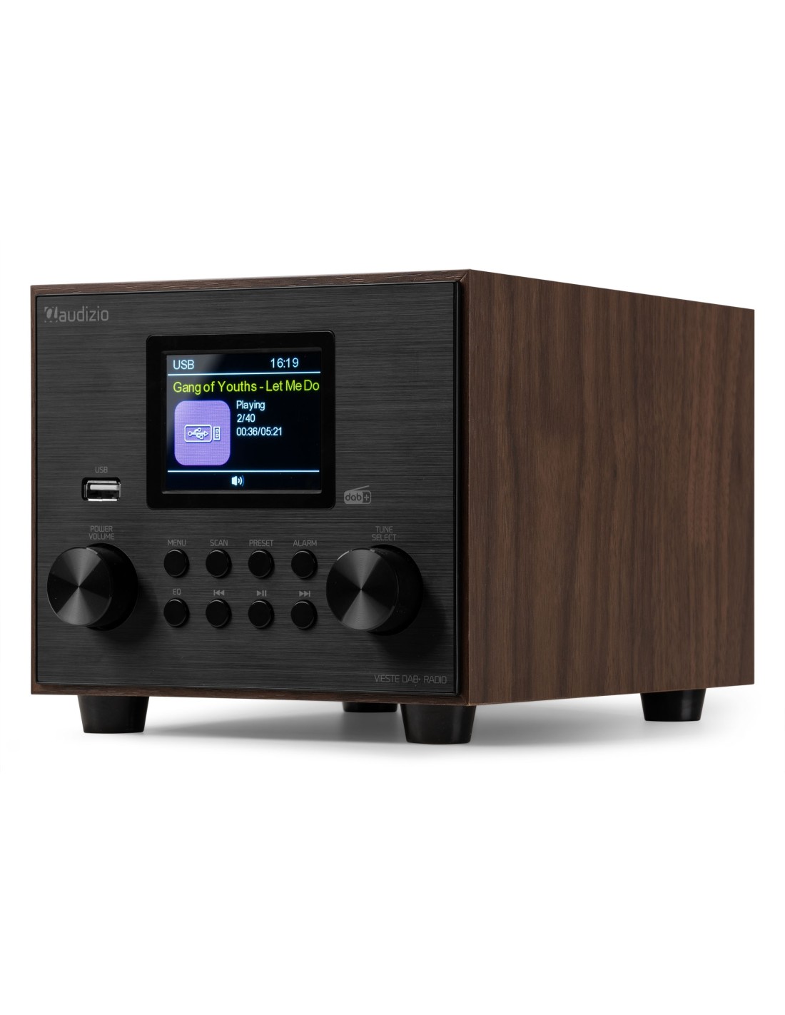 El sistema de radio digital Vieste combina un sonido potente, una conectividad versátil y funciones convenientes para mejorar su disfrute auditivo. Para darle al sonido un refuerzo extra de graves, se ha incorporado un subwoofer adicional en la parte inferior. El Vieste cuenta con recepción de radio FM tradicional y DAB+ para que pueda disfrutar de todas sus emisoras favoritas guardándolas en 40 presintonías disponibles. También puede reproducir sus pistas MP3 favoritas; conecte un dispositivo usando la entrada auxiliar o emparéjelo a través de BT para reproducir música desde su teléfono inteligente, tableta o computadora portátil.