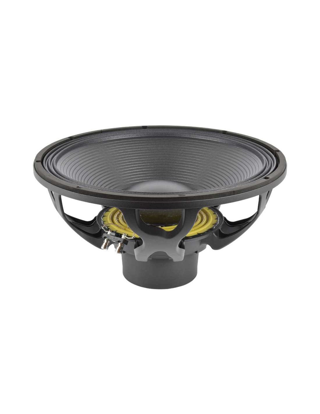 Impedancia nominal 8 Ohm Potencia admisible 1600 W AES Diámetro nominal 460 mm 18 in Sensibilidad 96 dB 1 W/1 m @ ZN Impedancia mínima 7 ohm Rango de frecuencias 35-1000 Hz Potencia programa 3200 W Diámetro Bobina 101.6 mm 4 in Factor BL 24.5 N/A Masa móvil 0.229 kg Altura bobinado 35 mm Altura entrehierro 14 mm Desplazamiento máximo pp 65 mm