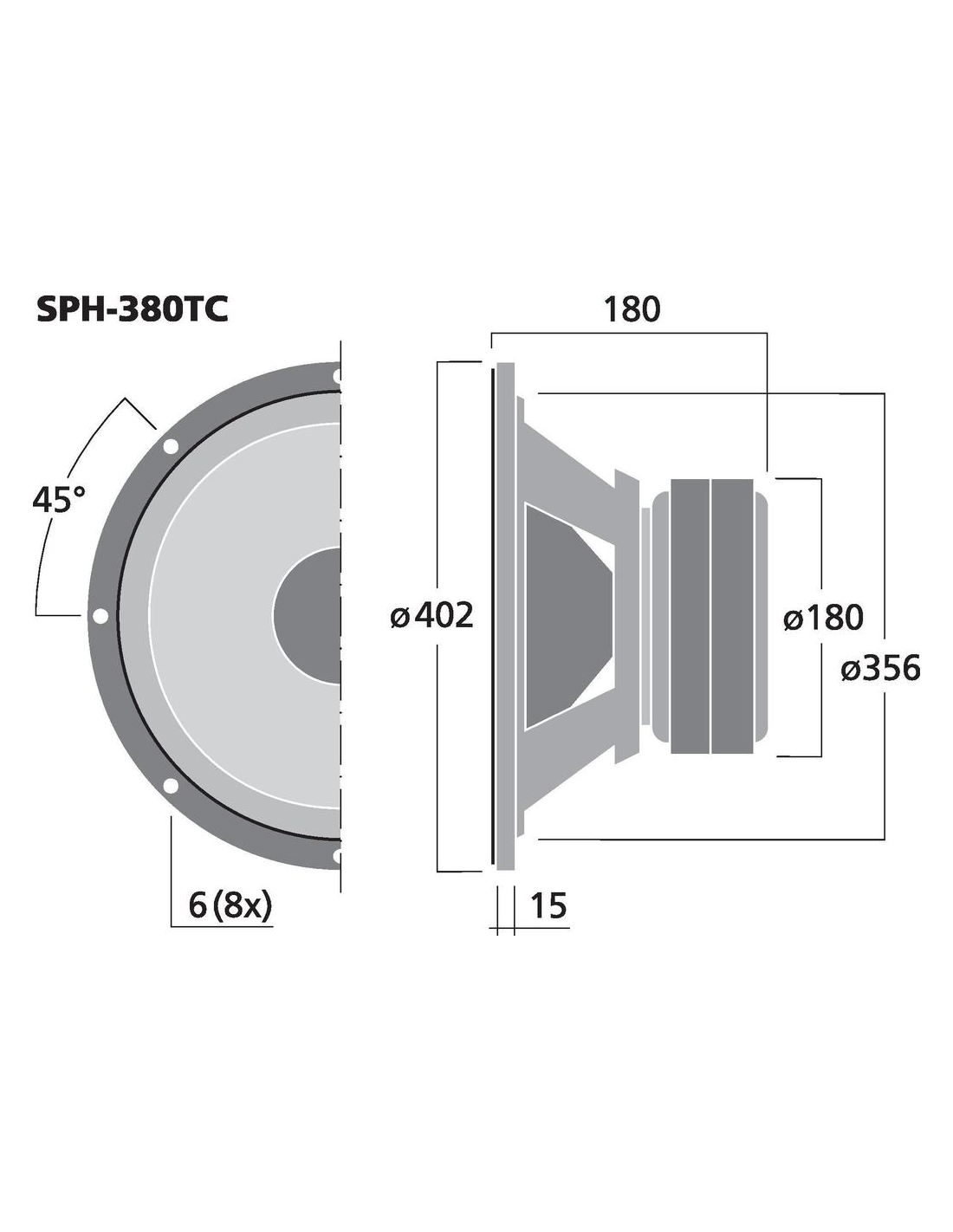 impedancia z :2 x 4 Ω:1:0,m todo de transmisi n:cable:2:0,rango de frecuencias:f3-800 Hz:3:0,frecuencia de resonancia fs :21,5 Hz:4:0,potencia nominal rms :2 x 250 W:5:0,pico de potencia musical max :2 x 400 W:6:0,sensibilidad:89 dB/W/m:7:0,pliegue susp cms :0,28 mm/N:8:0,masa m vil mms :199,5 g:9:0,factor q mec qms :2,81:10:0,factor q el ctrico qes :0,31:11:0,factor q total qts :0,28:12:0,volumen equivalente vas :275 l:13:0,resistencia dc re :2x 3,6 Ω/1x 7,2 Ω:14:0,factor de fuerza bxl :25 Tm:15:0,inductancia de la membrana le :2x 1,1 mH/1x 4,4 mH:16:0,di metro de la membrana:Ø 75,5 mm:17:0,soporte de la membrana:Aluminio:18:0,excursi n lineal xmax :± 11,1 mm:19:0,superficie de emisi n sd :845 cm2:20:0,peso del im n:3,7 kg:21:0,di metro del im n:Ø 180 mm:22:0,corte de montaje:Ø 356 mm:23:0,profundidad de montaje:165 mm:24:0,dimensiones:Ø 402 x 180 mm:25:0,di metro exterior:Ø 402 mm:26:0,ancho:Ø 402 mm:27:0,altura:Ø 402 mm:28:0,profundidad:180 mm:29:0,color:negro:30:0,temp ambiente admis :0 a 40 °C:31:0,peso:10,62 kg:32:0,uds por embalaje:1:33:0,tipo de altavoz:15":34:0,dimensiones del paquete b x h x p :0,44 x 0,23 x 0,44 m:35:0,peso bruto:12,72 kg:36:0,peso neto:10,62 kg:37:0,peso neto:10,62 kg:38:0