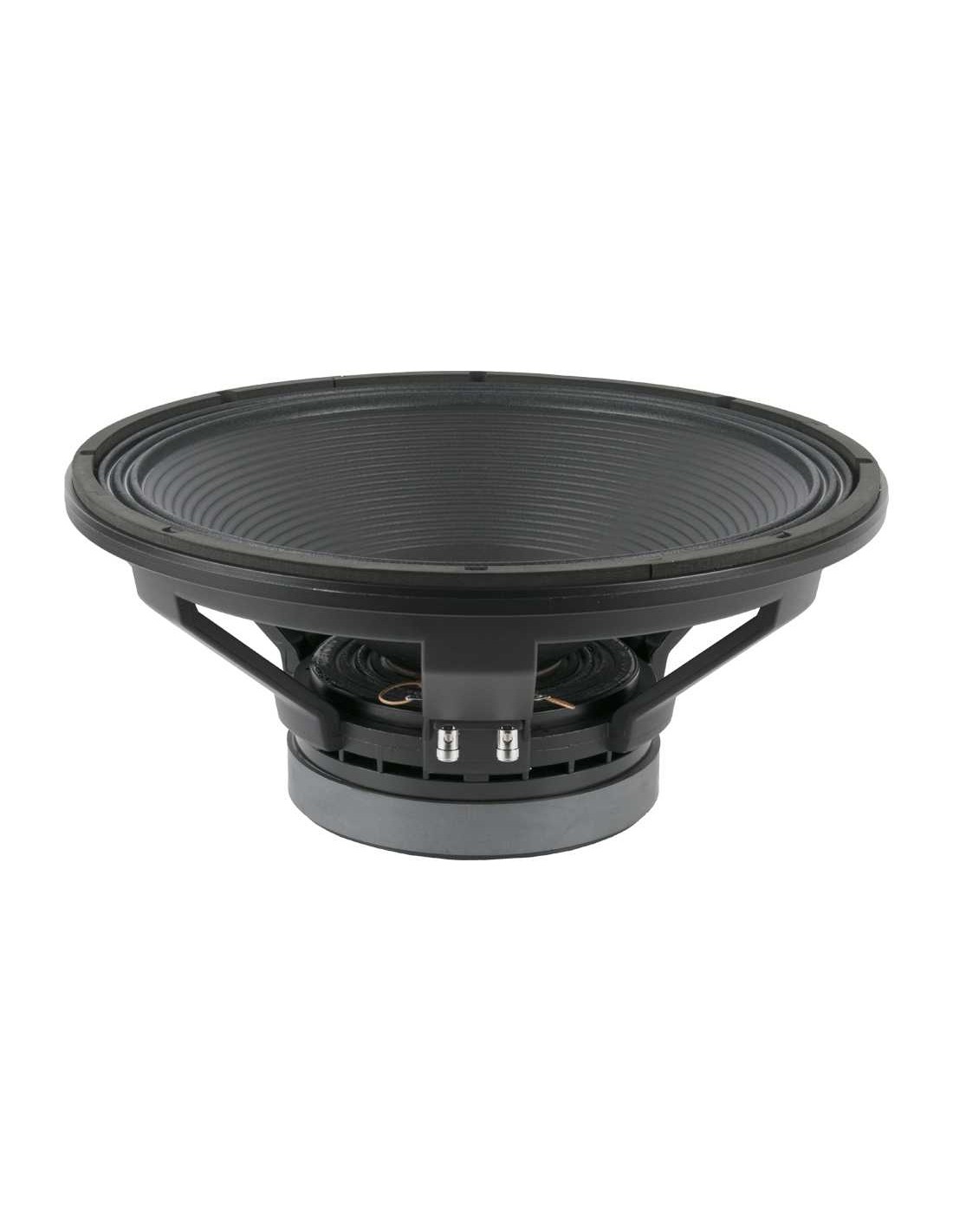 Impedancia nominal 8 Ohm Potencia admisible 1200 W AES Diámetro nominal 460 mm 18 in Sensibilidad 98 dB 1 W @ 1 m @ ZN Impedancia mínima 5.5 ohm Rango de frecuencias 30-2000 Hz Potencia programa 2400 W Diámetro Bobina 100 mm 4 in Factor BL 26.8 N/A Masa móvil 0.221 Kg Altura bobinado 21 mm Altura entrehierro 12 mm Desplazamiento máximo pp 52 mm