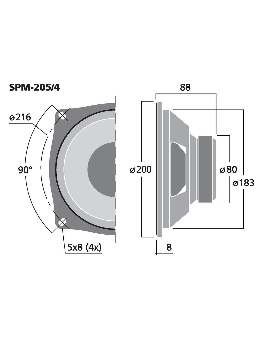 impedancia z :4 Ω:1:0,m todo de transmisi n:cable:2:0,rango de frecuencias:f3-5.000 Hz:3:0,frecuencia de resonancia fs :37 Hz:4:0,potencia nominal rms :70 W:5:0,pico de potencia musical max :150 W:6:0,sensibilidad:89 dB/W/m:7:0,pliegue susp cms :0,98 mm/N:8:0,masa m vil mms :18 g:9:0,factor q mec qms :2,71:10:0,factor q el ctrico qes :0,68:11:0,factor q total qts :0,55:12:0,volumen equivalente vas :72 l:13:0,resistencia dc re :3,6 Ω:14:0,factor de fuerza bxl :4,75 Tm:15:0,inductancia de la membrana le :0,65 mH:16:0,di metro de la membrana:Ø 25,5 mm:17:0,soporte de la membrana:Aluminio:18:0,excursi n lineal xmax :± 3 mm:19:0,superficie de emisi n sd :210 cm2:20:0,peso del im n:380 g:21:0,di metro del im n:Ø 80 mm:22:0,corte de montaje:Ø 183 mm:23:0,profundidad de montaje:80 mm:24:0,di metro del agujero de montaje:Ø 216 mm:25:0,dimensiones:Ø 200 x 88 mm:26:0,di metro exterior:Ø 200 mm:27:0,ancho:Ø 200 mm:28:0,altura:Ø 200 mm:29:0,profundidad:88 mm:30:0,color:negro:31:0,temp ambiente admis :0 a 40 °C:32:0,peso:1,062 kg:33:0,uds por embalaje:1:34:0,tipo de altavoz:8":35:0,dimensiones del paquete b x h x p :0,215 x 0,125 x 0,215 m:36:0,peso bruto:1,23 kg:37:0,peso neto:1,062 kg:38:0,peso neto:1,062 kg:39:0