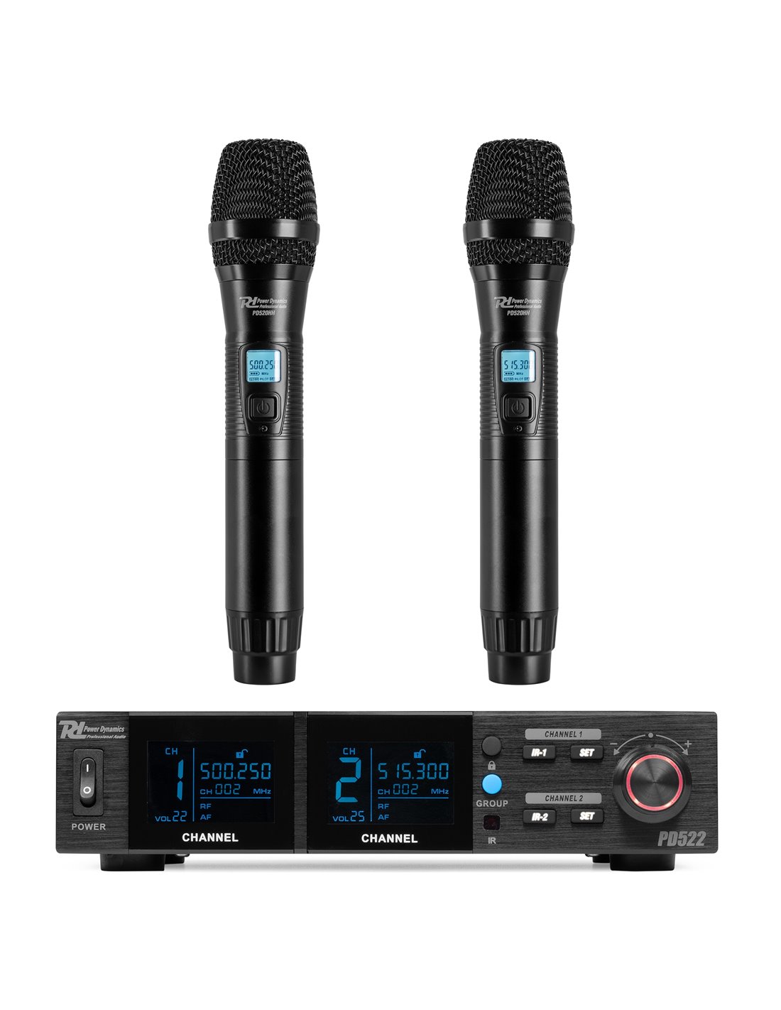 El PD522 es un sistema de micrófono inalámbrico profesional equipado con 2x 100 canales y está diseñado para actuaciones o eventos más grandes. El receptor con pantallas LCD dinámicas y claras garantiza una transmisión sin interferencias, junto con el silenciador de alta calidad y el sintetizador PLL. El sistema de micrófono PD522 funciona en la banda de 500-530 MHz y es adecuado para voces, presentaciones, formación y otras aplicaciones de megafonía.