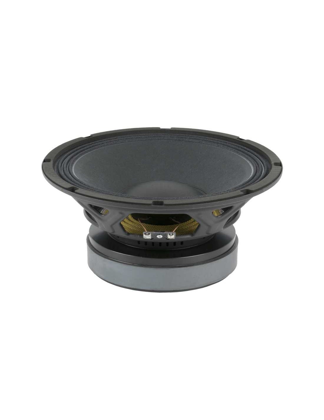 Impedancia nominal 8 Ohm Potencia admisible 500 W AES Diámetro nominal 250 mm 10 in Sensibilidad 96 dB @ 1 W @ ZN Impedancia mínima 7.2 ohm Rango de frecuencias 70-5000 Hz Potencia programa 1000 W Diámetro Bobina 63.5 mm 2.5 in Factor BL 17.6 N/A Masa móvil 0.047 kg Altura bobinado 19.5 mm Altura entrehierro 9.5 mm Desplazamiento máximo pp 40 mm