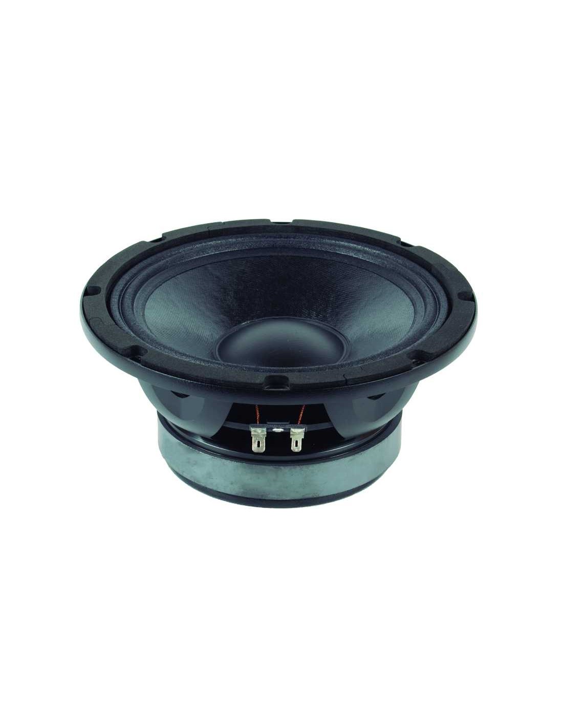 Impedancia nominal 8 Ohm Potencia admisible 300 W AES Diámetro nominal 200 mm 8 in Sensibilidad 95 dB 1 W/1 m @ ZN Impedancia mínima 7.6 ohm Rango de frecuencias 65-4000 Hz Potencia programa 600 W Diámetro Bobina 50.8 mm 2 in Factor BL 15.1 N/A Masa móvil 0.026 kg Altura bobinado 15 mm Altura entrehierro 8 mm Desplazamiento máximo pp 32 mm