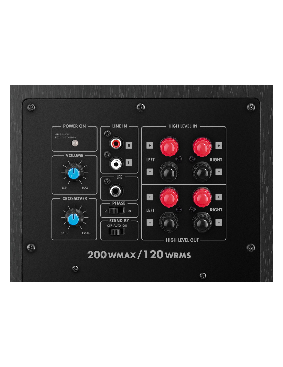activo pasivo:activo:1:0,m todo de transmisi n:cable:2:0,potencia de salida total:200 W:3:0,potencia nominal rms :120 W:4:0,rango de frecuencias:35-100 Hz:5:0,se al de entrada:150 mV/24 kΩ (RCA I7D) 55 mV/16 kΩ (RCA mono) 2,3 V/440 Ω (high IN):6:0,graves:altavoz de graves de 25 cm (10"):7:0,n mero de altavoces:1:8:0,tama o del altavoz:25 cm (10"):9:0,sensibilidad:88 dB/W/m:10:0,spl m x :108 dB:11:0, ngulo del haz:No direccional:12:0,material de la carcasa:madera:13:0,color:negro:14:0,temp ambiente admis :0 a 40 °C:15:0,alimentaci n:˜ 230 V/50 Hz/240 VA:16:0,dimensiones:330 x 360 x 360 mm:17:0,ancho:330 mm:18:0,altura:360 mm:19:0,profundidad:360 mm:20:0,peso:13 kg:21:0,entradas:1x RCA (I/D), asim., IN 1x RCA (mono), asim., IN 1x terminal de rosca (estéreo), high level IN:22:0,salidas:1x terminales de rosca (estéreo), salida high-level:23:0,dimensiones del paquete b x h x p :0,46 x 0,46 x 0,46 m:24:0,peso bruto:15,68 kg:25:0,peso neto:13,05 kg:26:0,peso neto:13,05 kg:27:0