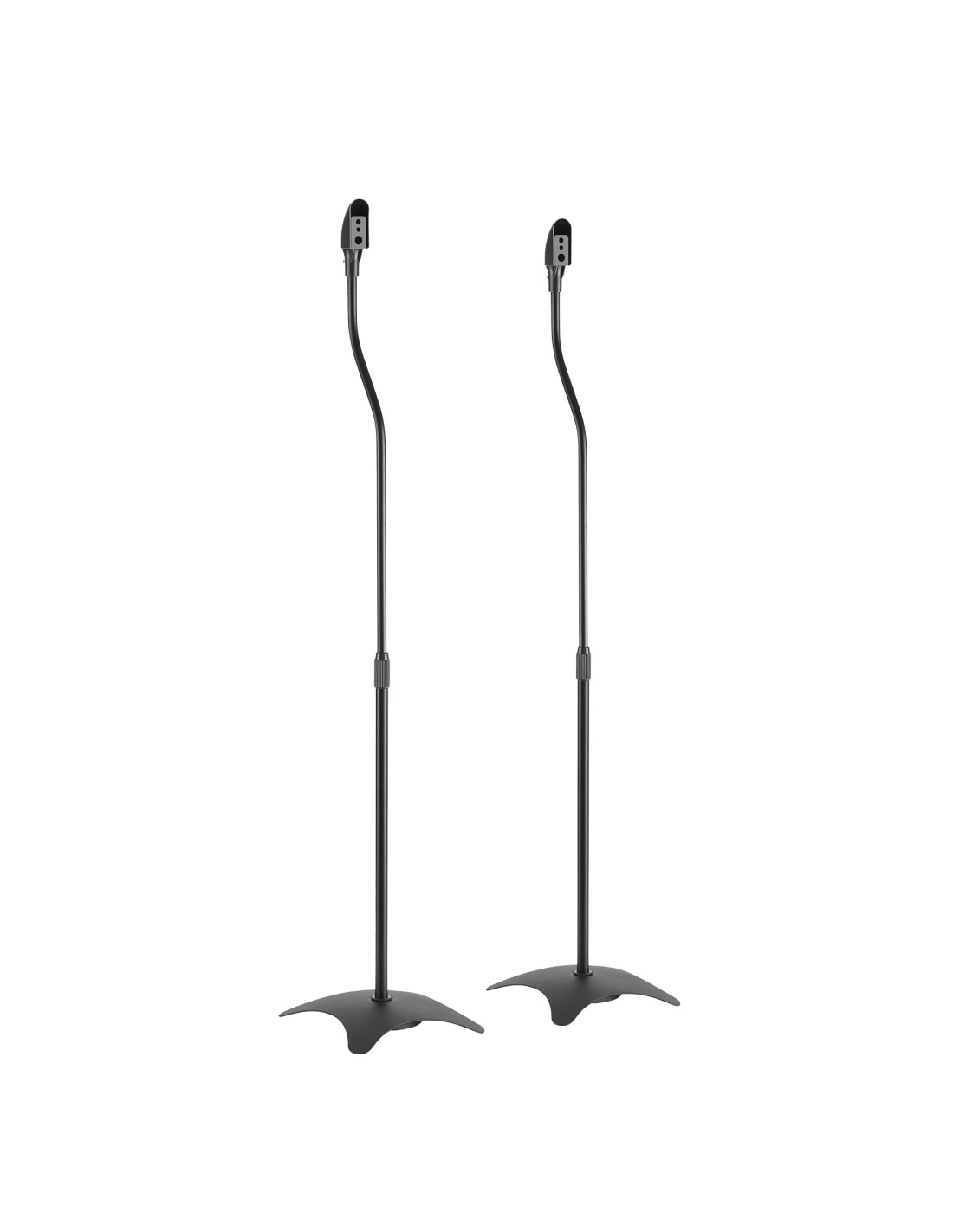 El soporte de suelo para altavoz HTS10 es perfecto para altavoces satélite domésticos que pesen hasta 4,5 kg. El soporte se puede ajustar en altura entre 680 mm y 1100 mm para que coincida con el nivel del oído y proporcione la distribución de sonido más deseable. La construcción de acero sólido forma un marco sólido para garantizar la estabilidad en uso y la base de peso especialmente agregada evita que se vuelque. La base de hierro fundido también cuenta con una ruta de cable oculta para brindar un aspecto limpio y ordenado después de la instalación.