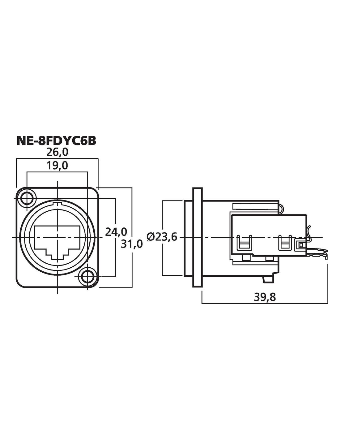descripci n:toma de panel:1:0,tipo:EtherCon NEUTRIK:2:0,cantidad:1:3:0,caracter sticas:contactos de aislamiento desplazable (IDC), opción de masa seleccionable, Cat. 6:4:0,color codificaci n de color:negro:5:0,conexiones:toma RJ45:6:0,temp ambiente admis :-10 a 60 °C:7:0,dimensiones:26 x 31 x 39,8:8:0,peso:31 g:9:0,caracter sticas:gama D:10:0,peso neto:0,031 kg:11:0