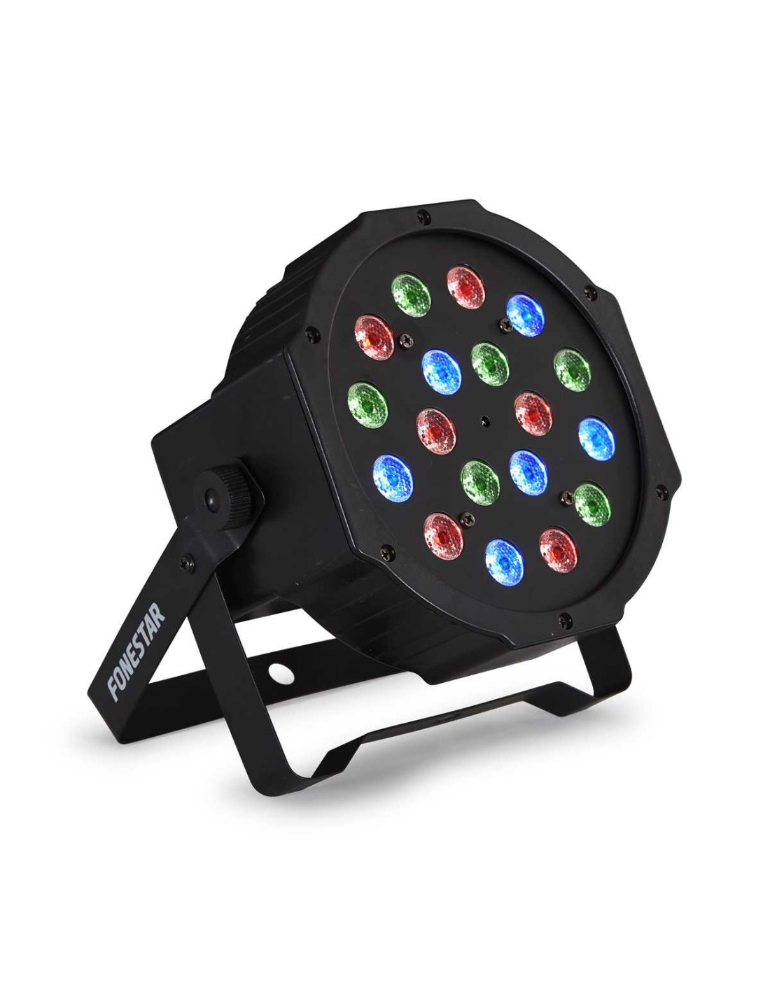 CARACTERÍSTICAS | Foco PAR plano RGB. Modo automático, modo estático, activación por sonido y modo maestro/esclavo. Ajuste de colores, dimmer, estrobo y velocidad de variación ajustable mediante controladora DMX. Micrófono incorporado. | |