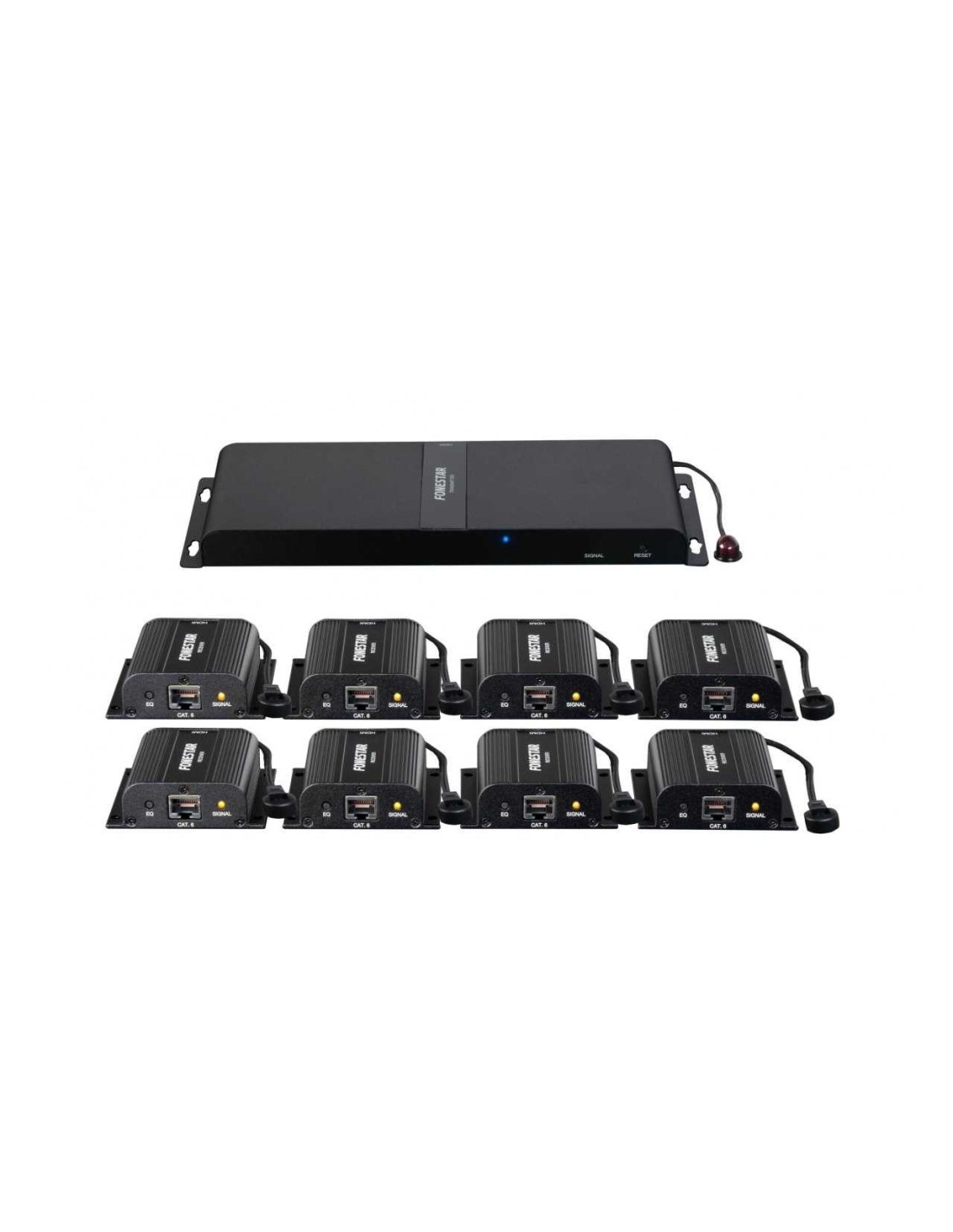 SALIDAS | 8 RJ-45 prolongación HDMI por cable Cat 6 1 HDMI hembra para monitor local | |