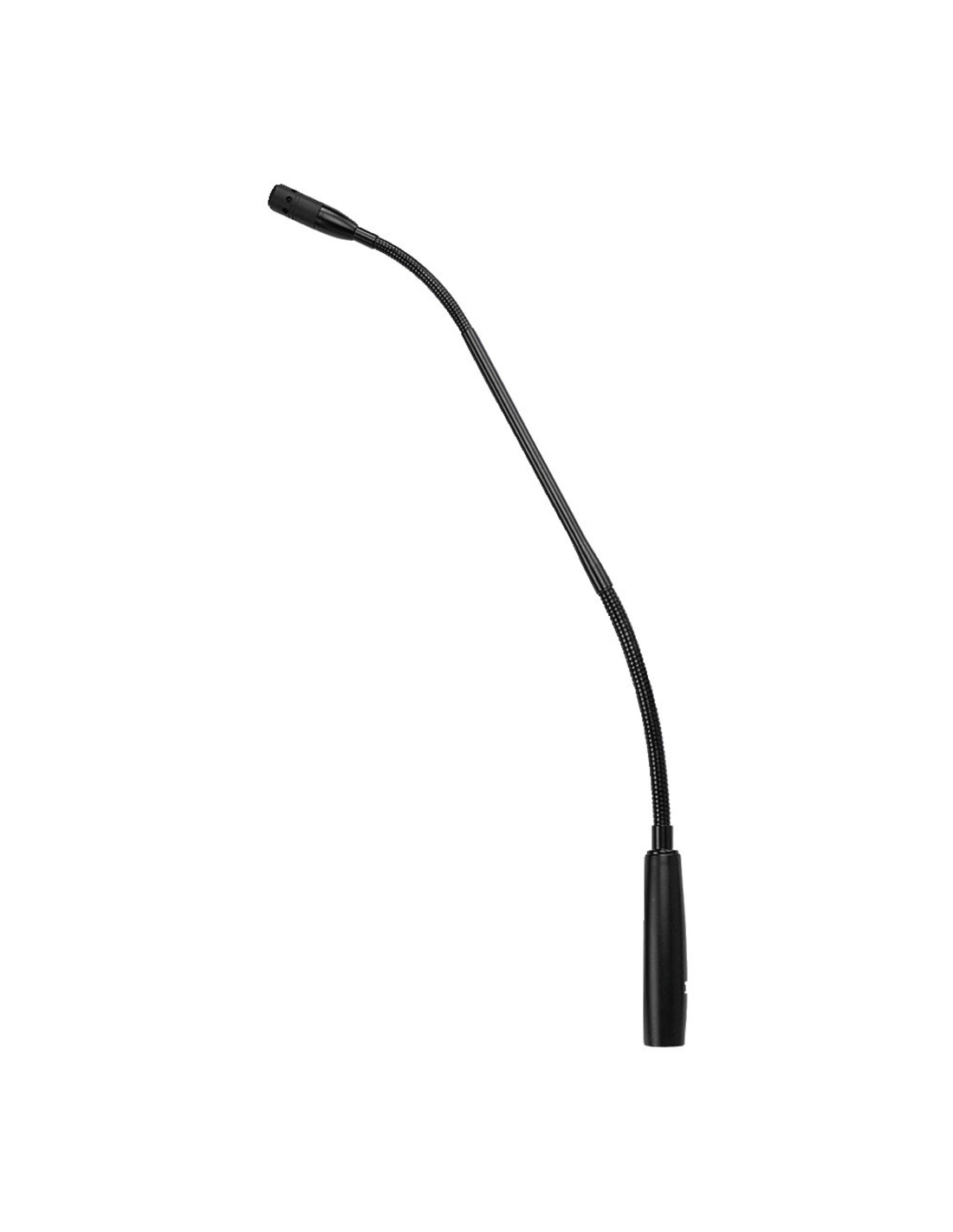 Descripción micrófono de cuello de cisne Método de transmisión cable Patrón direccional supercardioide Sistema negro electret/supercardioide Rango de frecuencias de audio 80-18.000 Hz Impedancia nominal 220 Ω ±30%  Sensibilidad 16 mV/Pa Presión sonora máxima 125 dB Alimentación phantom  DC 48 V Temp. ambiente admis. 0-40 °C Dimensiones 455 mm Peso 165 g Conexiones XLR, sim. Dimensiones del paquete (B x H x P) 0,09 x 0,045 x 0,5 m Peso bruto 0,34 kg Peso neto 0,165 kg Peso neto 0,165 kg DESCARGAS Datasheet Declaration of Conformity CE Declaration of Conformity UKCA