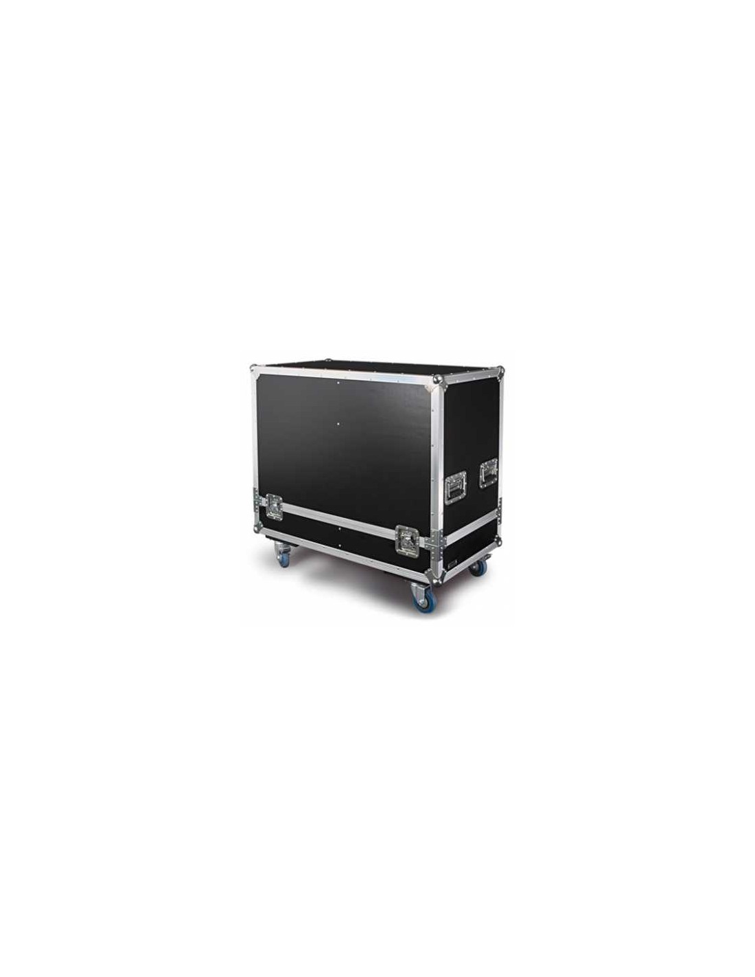 CARACTERÍSTICAS | Caja de transporte con división interior para 2 pantallas acústicas. En madera contrachapada revestida y forro interior de foam, tapa con cierre hermético, asas de transporte, ruedas con freno y cantoneras metálicas de protección. Construcción robusta para transporte y protección de materiales diversos. Acabado negro. Adecuada para transporte de 2 pantallas acústicas de 12'' con las dimensiones más comunes del mercado (p. ej. las pantallas acústicas FONESTAR mods. SB-3421, SB-3520, SB-3612, ASB-12300, ASB-12150U, etc). | |