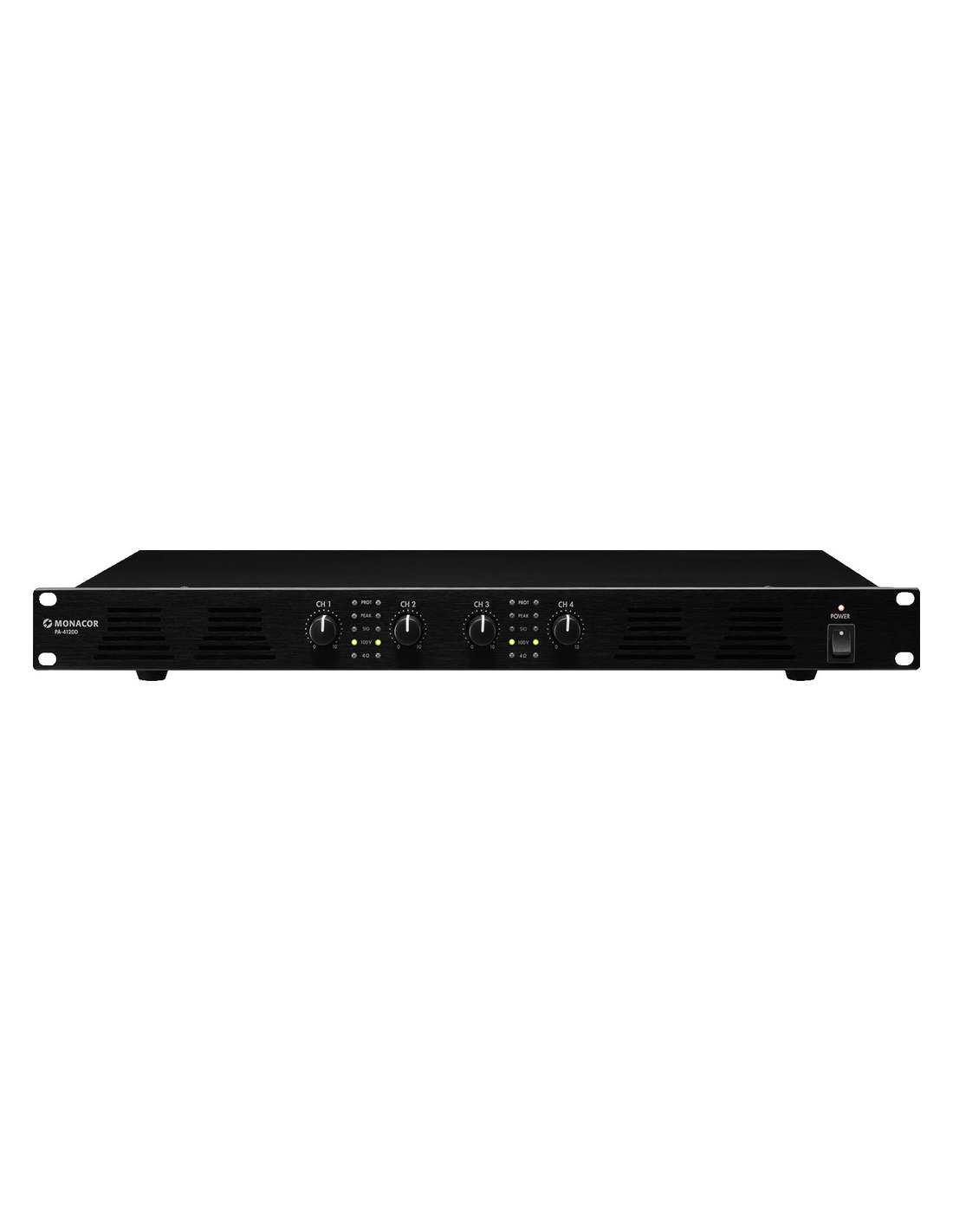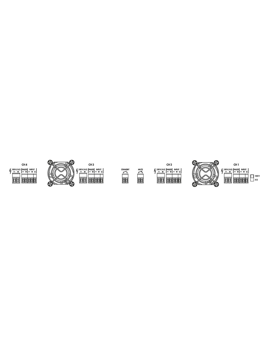 Pico de potencia de salida 480 W Potencia nominal 480 W Potencia nominal a 4 Ω 4 x 120 W Potencia nominal a 100 V 4 x 120 W Impedancia de salida 100 V/83 Ω, 4 Ω Canales 4 Entradas 775 mV/20 kΩ, sim. Rango de frecuencias 80-16.000 Hz Relación señal / ruido > 95 dB(A) THD < 0,1 % Alimentación ˜ 230 V/50 Hz/850 VA Voltaje de corriente ~ 230 V Frecuencia de la corriente 50 Hz Consumo, funcionamiento 850 VA Temp. ambiente admis. 0 a 40 °C Ancho 483 mm Altura 52 mm Profundidad 320 mm Unidades rack, U 1 Peso 5,1 kg Conexiones terminales de rosca (entradas), terminales de rosca (altavoces) Dimensiones del paquete (B x H x P) 0,54 x 0,14 x 0,39 m Peso bruto 6,05 kg Peso neto 5,12 kg Peso neto 5,12 kg DESCARGAS Datasheet Declaration of Conformity UKCA Declaration of Conformity CE Circuit diagram A1000015Z Instruction manual
