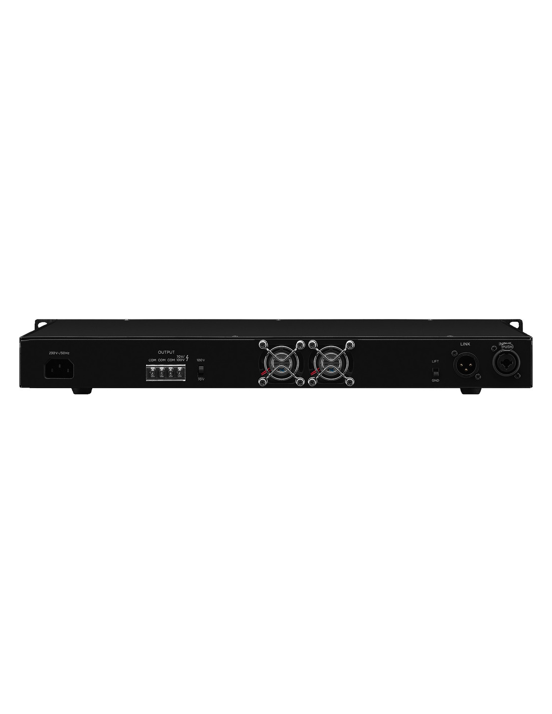 Pico de potencia de salida 480 W Potencia nominal 480 W Potencia nominal a 100 V 480 W Impedancia de salida 70 V/10 Ω, 100 V/20 Ω Canales 1 Entradas 710 mV/10 kΩ, simétrico Rango de frecuencias 80-16.000 Hz Relación señal / ruido > 98 dB(A) THD < 1 % Alimentación ˜ 230 V/50 Hz/1.100 VA Voltaje de corriente ~ 230 V Frecuencia de la corriente 50 Hz Consumo, funcionamiento 1.100 VA Temp. ambiente admis. 0 a 40 °C Ancho 483 mm Altura 44 mm Profundidad 255 mm Unidades rack, U 1 Peso 4 kg Conexiones 1 x comb. 6,3 mm/XLR (entrada), 1 x XLR (link), terminales de rosca (altavoces) Dimensiones del paquete (B x H x P) 0,36 x 0,14 x 0,54 m Peso bruto 5,23 kg Peso neto 4,28 kg Peso neto 4,28 kg DESCARGAS Datasheet Declaration of Conformity CE Declaration of Conformity UKCA Instruction manual A177020Z