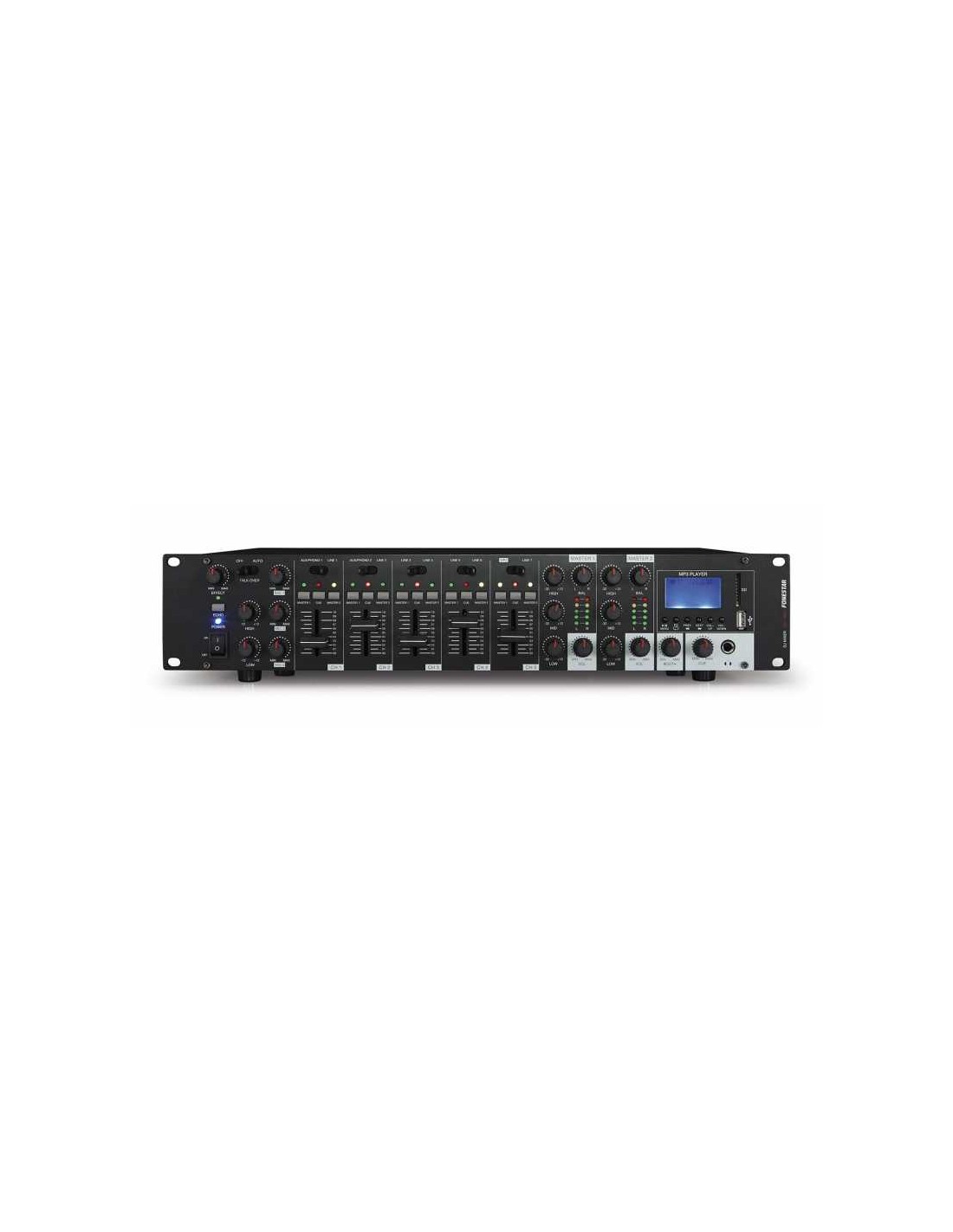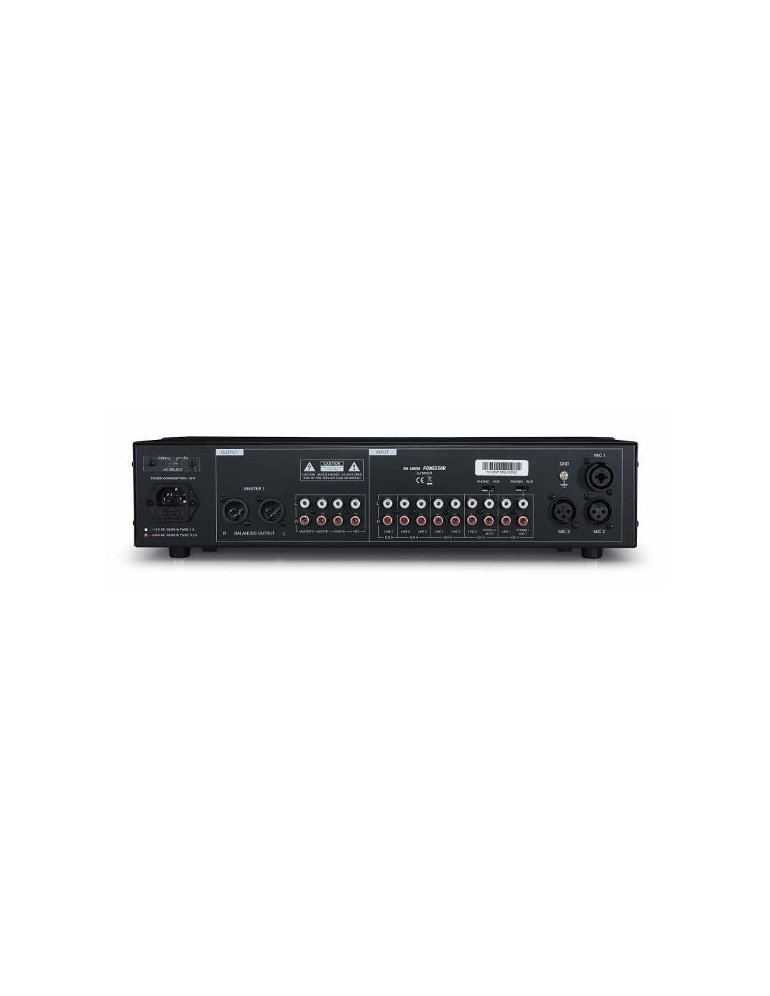 CARACTERÍSTICAS | Mezclador profesional de 12 entradas, 8 canales, asignables a 2 salidas master con control de volumen independiente. Reproductor USB/SD. | |