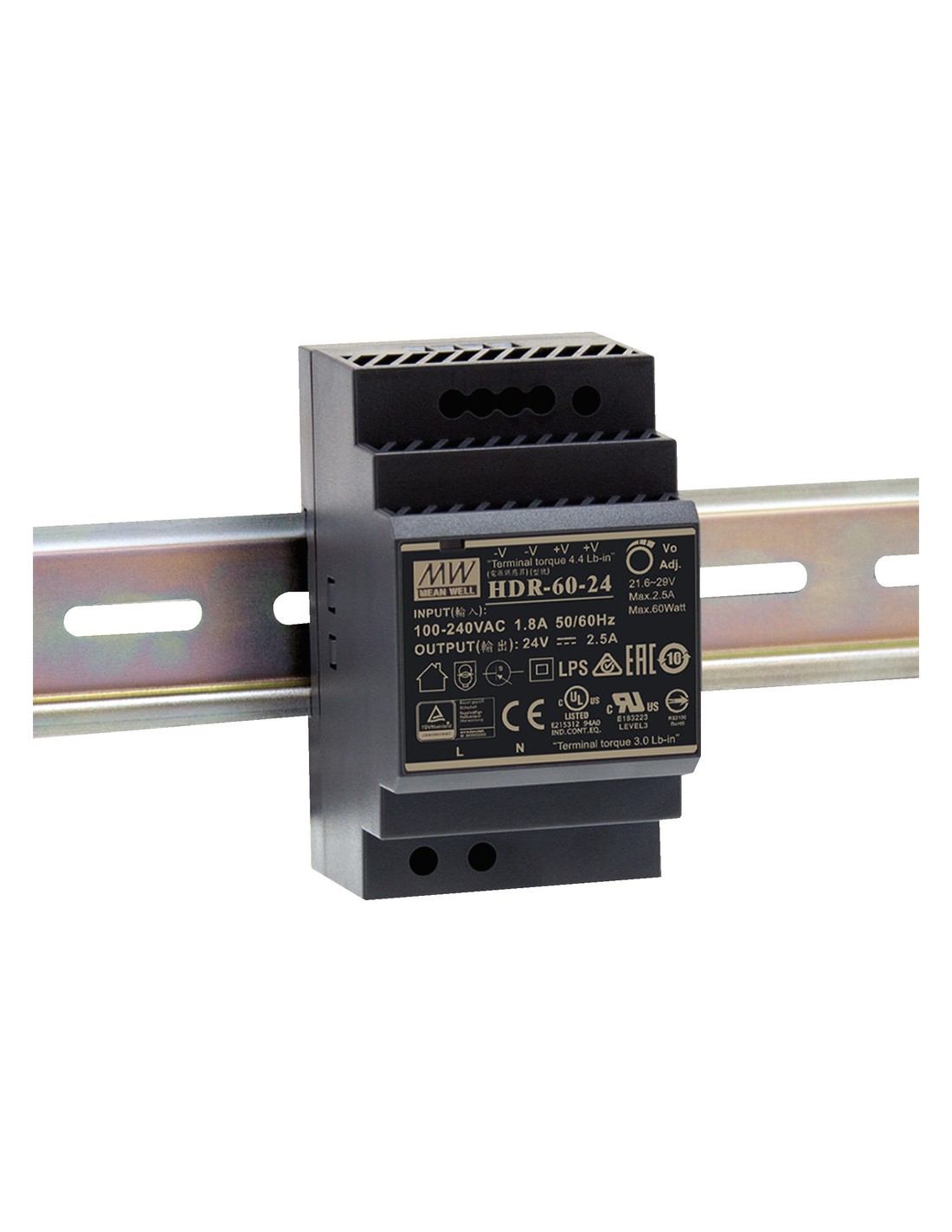 categor a:Fuente de alimentación conmutada:1:0,voltaje de entrada:˜ 85-265 V/47-63 Hz:2:0,voltaje de salida:DC 24 V:3:0,corriente de carga de salida:2,5 A:4:0,conexiones:Conexiones con abrazaderas de tornillo:5:0,protecci n contra cortocircuitos:sí:6:0,protecci n contra sobrecarga:sí:7:0,protecci n contra sobrecalentamiento:sí:8:0,temp ambiente admis :-30-+70 °C:9:0,dimensiones:52,5 x 90 x 58,4 mm:10:0,peso:190 g:11:0,peso neto:0,191 kg:12:0