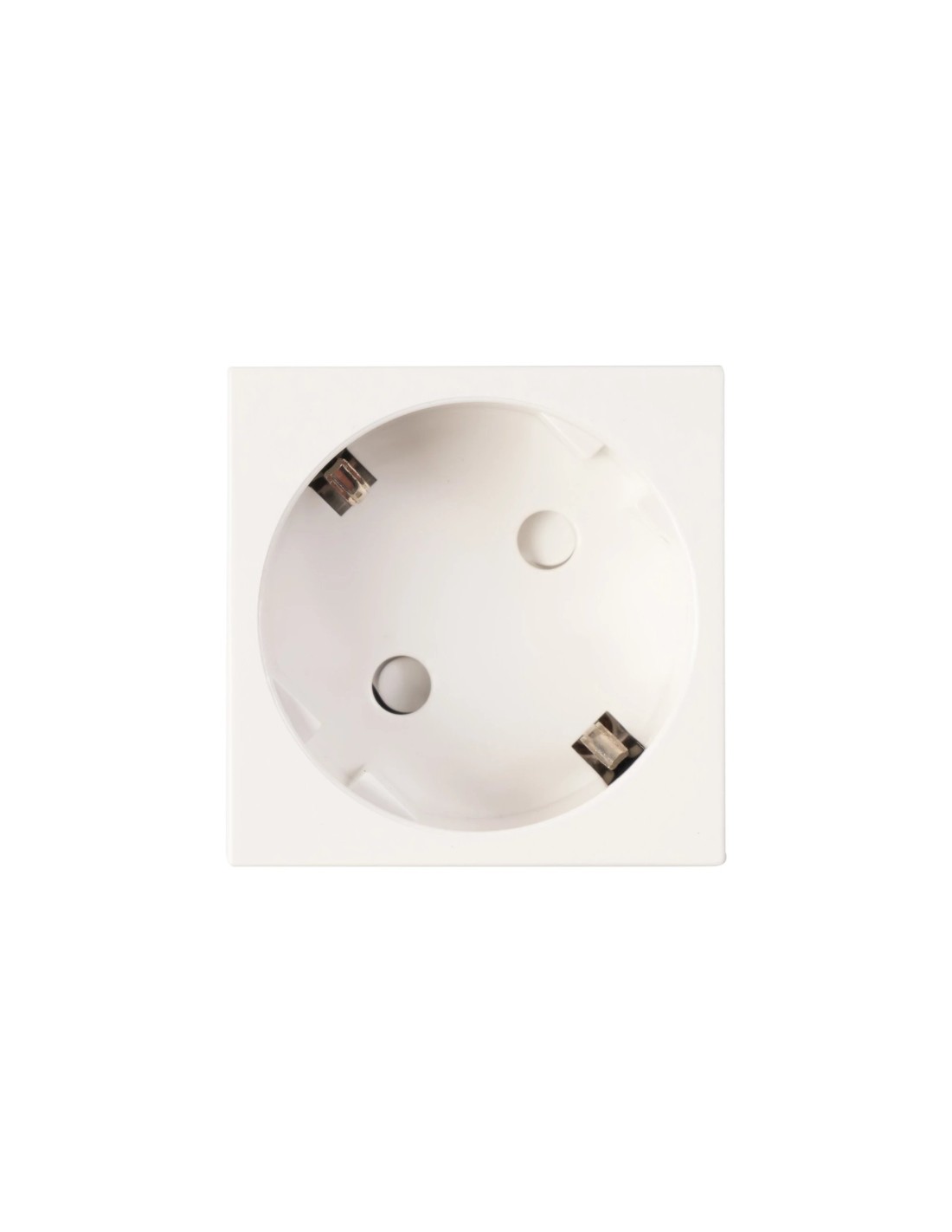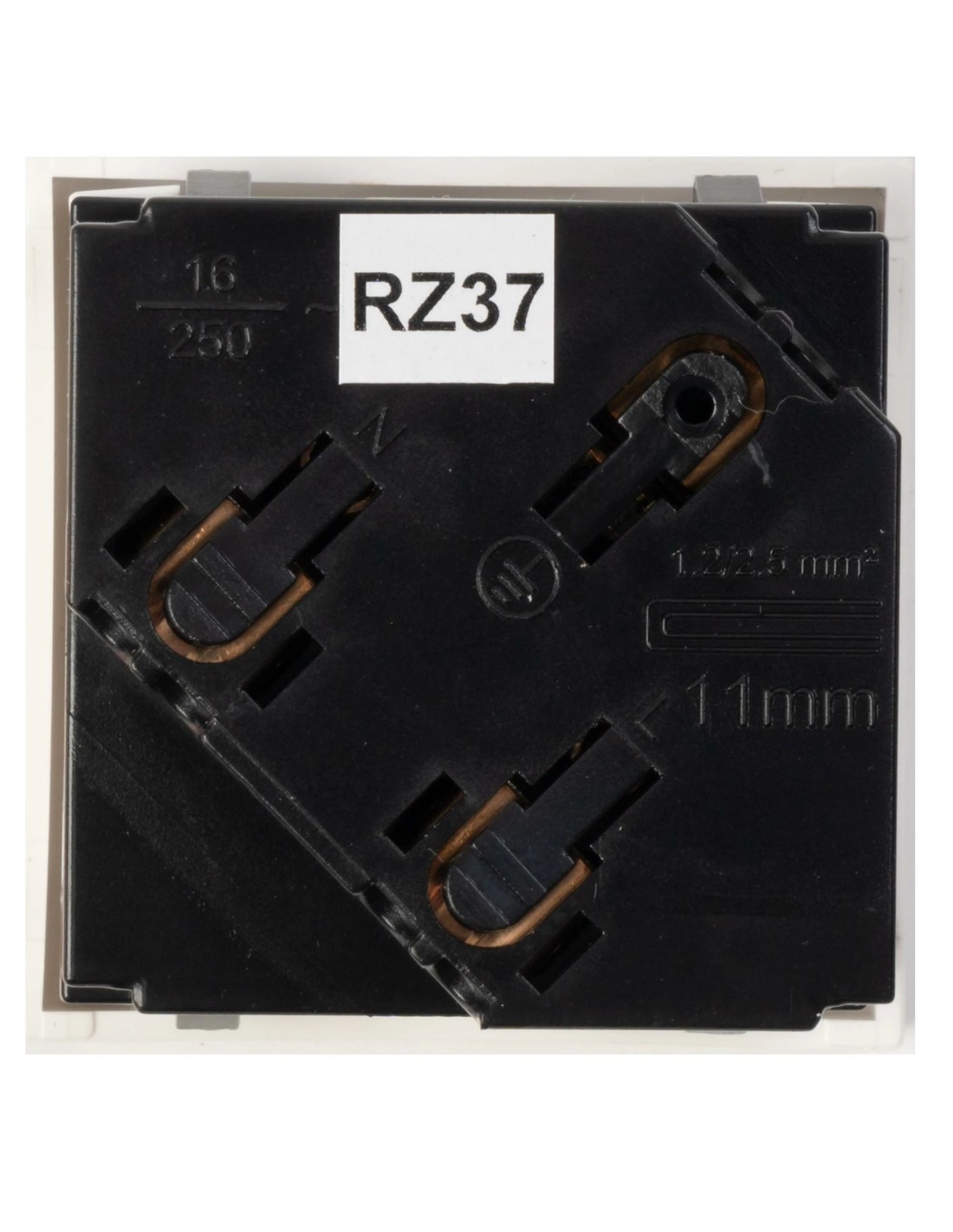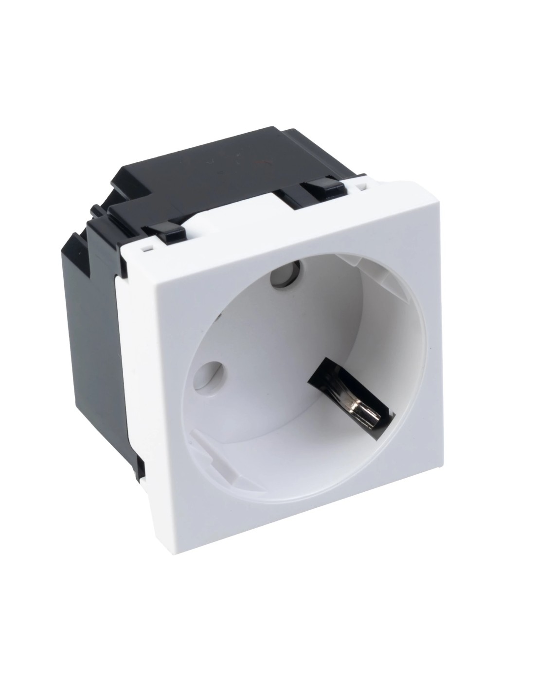 CARACTERÍSTICAS | Base de enchufe bipolar con toma de tierra. 250 V CA, 16 A. 1 panel de conexión. Bornas a tornillo. Obturador de seguridad. | |