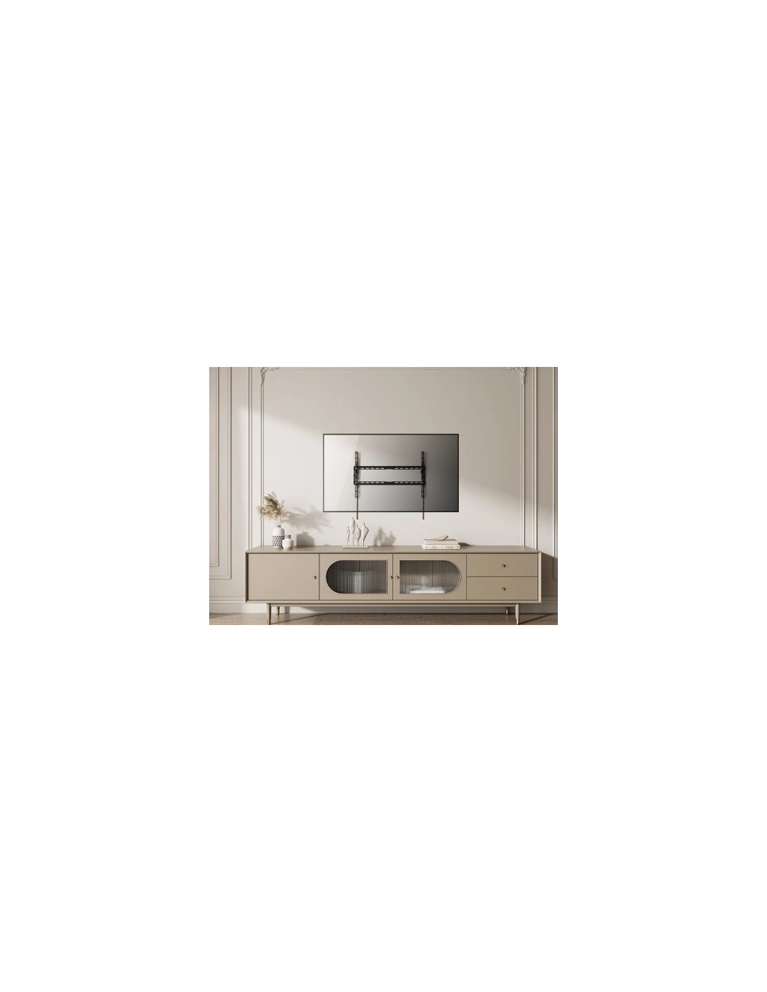 Instalación de soporte TV segura y versátil para tus espacios El TILT-064EN es un soporte de pared inclinable diseñado para televisores de entre 37” y 100” (94 cm a 254 cm), ideal para optimizar el ángulo de visión y garantizar una instalación robusta y discreta. Con un perfil ultradelgado de solo 2 cm de distancia a la pared, ofrece un diseño en color negro que se integra elegantemente en cualquier espacio. Su compatibilidad con múltiples formatos VESA (desde 200x200 hasta 600x400) lo convierte en una solución versátil para diferentes tipos de pantallas. Adaptabilidad y resistencia para soportar hasta 45 kg Este soporte permite una inclinación vertical de hasta -8º, ayudando a reducir los reflejos y mejorar la comodidad visual. Su construcción resistente soporta hasta 45 kg, ofreciendo seguridad para el usuario y estabilidad para el televisor. Además, cuenta con una placa de pared de 65 x 17 cm que proporciona un ajuste preciso para diferentes dimensiones de pantalla. La anchura ajustable asegura su adaptabilidad en un rango de 5 a 60 cm de ancho y 40 cm de alto. ¿Por qué elegir el soporte TILT-064EN? Instalación simple y segura: Incluye un nivel de burbuja, tornillos, tacos y una plantilla de instalación que facilitan el montaje sin complicaciones. Sistema de seguridad integrado: Tornillos de seguridad aseguran que el televisor quede firmemente sujeto al soporte, evitando desplazamientos accidentales. Perfil discreto y delgado: Con un peso ligero de solo 0,95 kg y un diseño minimalista, este soporte combina funcionalidad y estética. El TILT-064EN es ideal para quienes buscan una solución de soporte inclinable de calidad para televisores de gran tamaño, con una instalación segura y fácil, y una estética adaptable a diversos estilos de decoración.