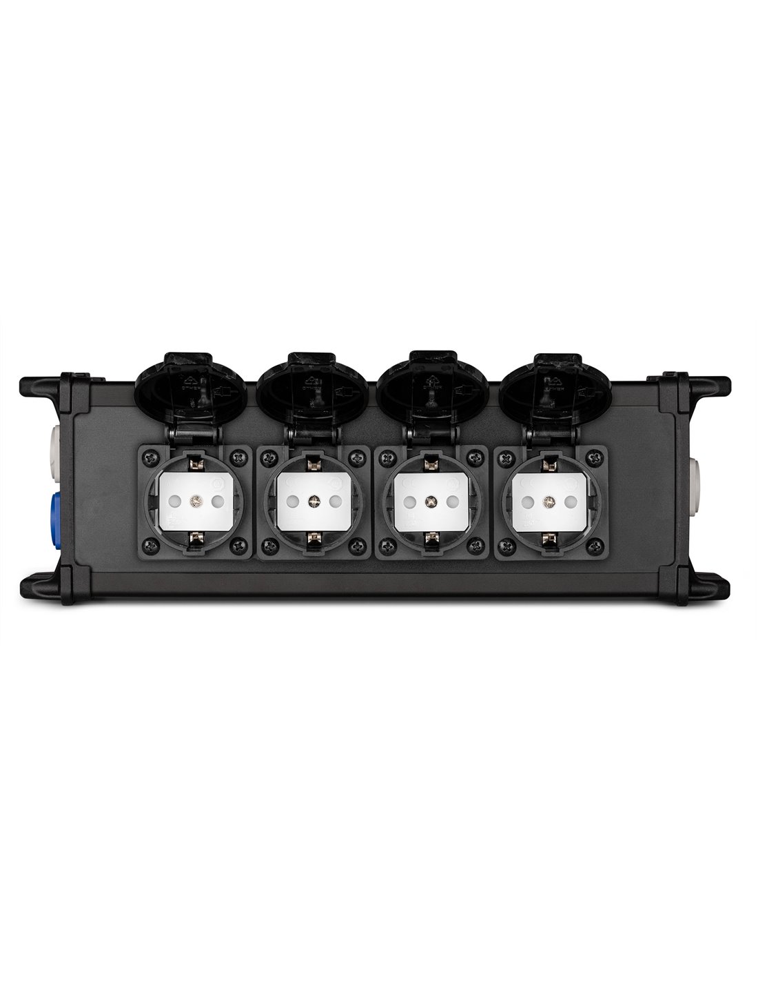 El PDConnex PBS40 es un distribuidor de potencia diseñado para satisfacer todas sus necesidades de energía de equipos de iluminación y backline. Diseñado teniendo en cuenta la versatilidad y la conveniencia, esta unidad de distribución de energía con conexiones P-Con y 4 salidas Shuko está aquí para simplificar su configuración y mejorar su flujo de trabajo. Para el montaje suspendido y fijo se utilizan dos roscas M10.