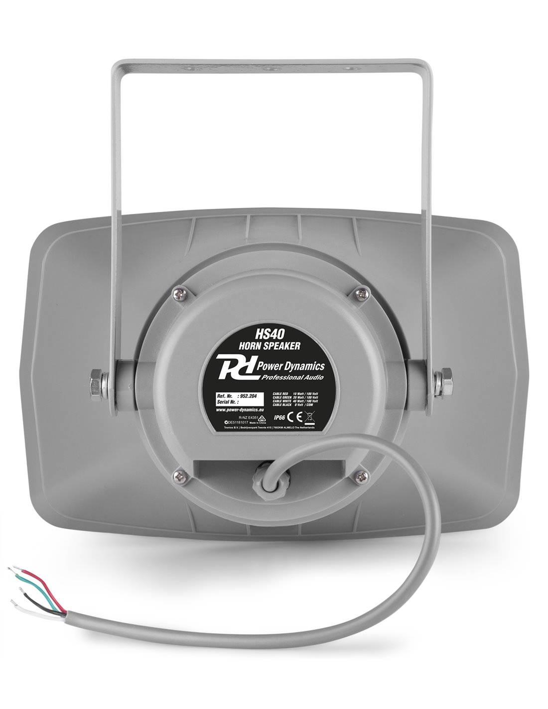 La serie HS es un conjunto de altavoces exponenciales de bocina de perfil rectangular en linea de 100V para PA ideales para uso general en instalaciones de exterior. Todo los modelos estan construidos en plastico rigido ABS acabado en color gris resistente a intemperie con motor de 100V y transformados.