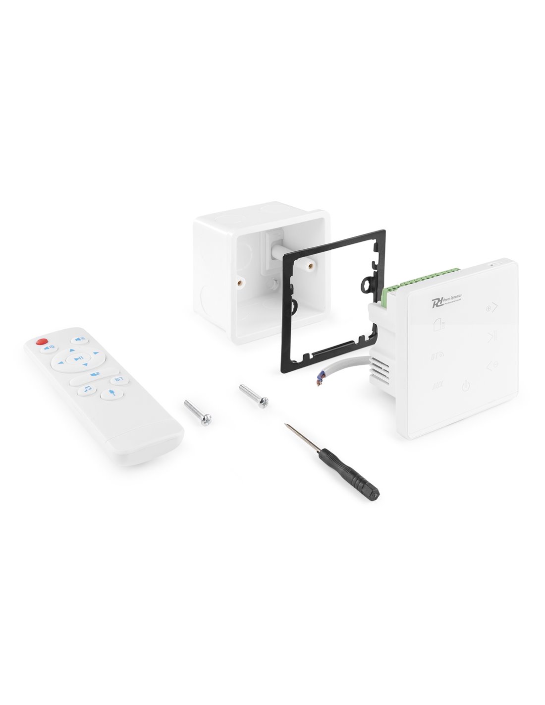 La serie Powerline son sistemas musicales para empotrar en pared con amplificador integrado y reproductor de música. Su elegante acabado con paneles táctiles ofrece un look minimalista, por lo que tu sonido se escucha, pero no se ve. Todos los cables y conexiones quedan seguros y escondidos en la caja de pared para evitar peligros. Disfruta de tu música desde varias fuentes como BT Streaming, USB, microSD card y AUX con nivel línea. La función BT streaming permite conectar directamente con tu smartphone, tableta, portátil, etc. La pantalla táctil controla todos los aspectos de tu sistema; es tocar y funcionar. También puedes usar el mando a distancia incluido.