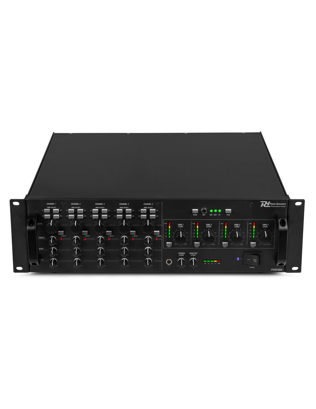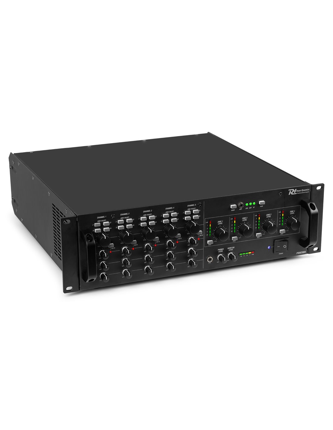 El PAM2004 viene equipado con un potente amplificador integrado que proporciona hasta 200 vatios de potencia a cada una de las 4 zonas de salida. Además, el PAM2004 presenta una gama de funciones avanzadas para ayudarlo a ajustar su sonido, incluidos los controles de graves y agudos, un limitador incorporado para evitar la distorsión y una función de prioridad de voz que silencia otros canales cuando se activa un canal de mayor prioridad.