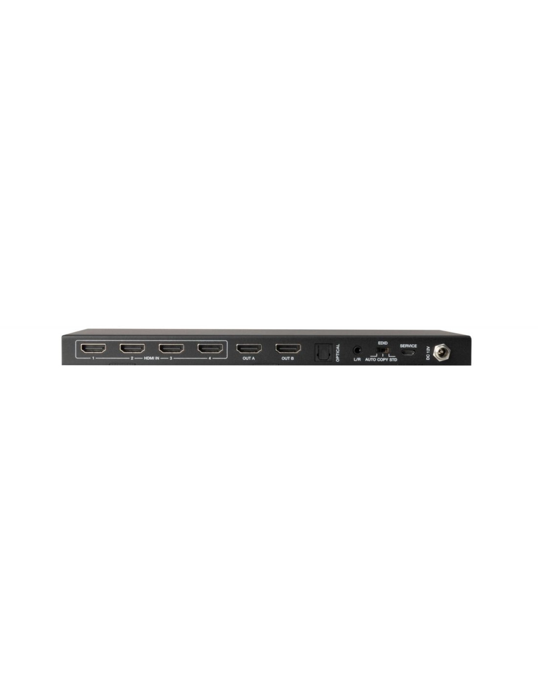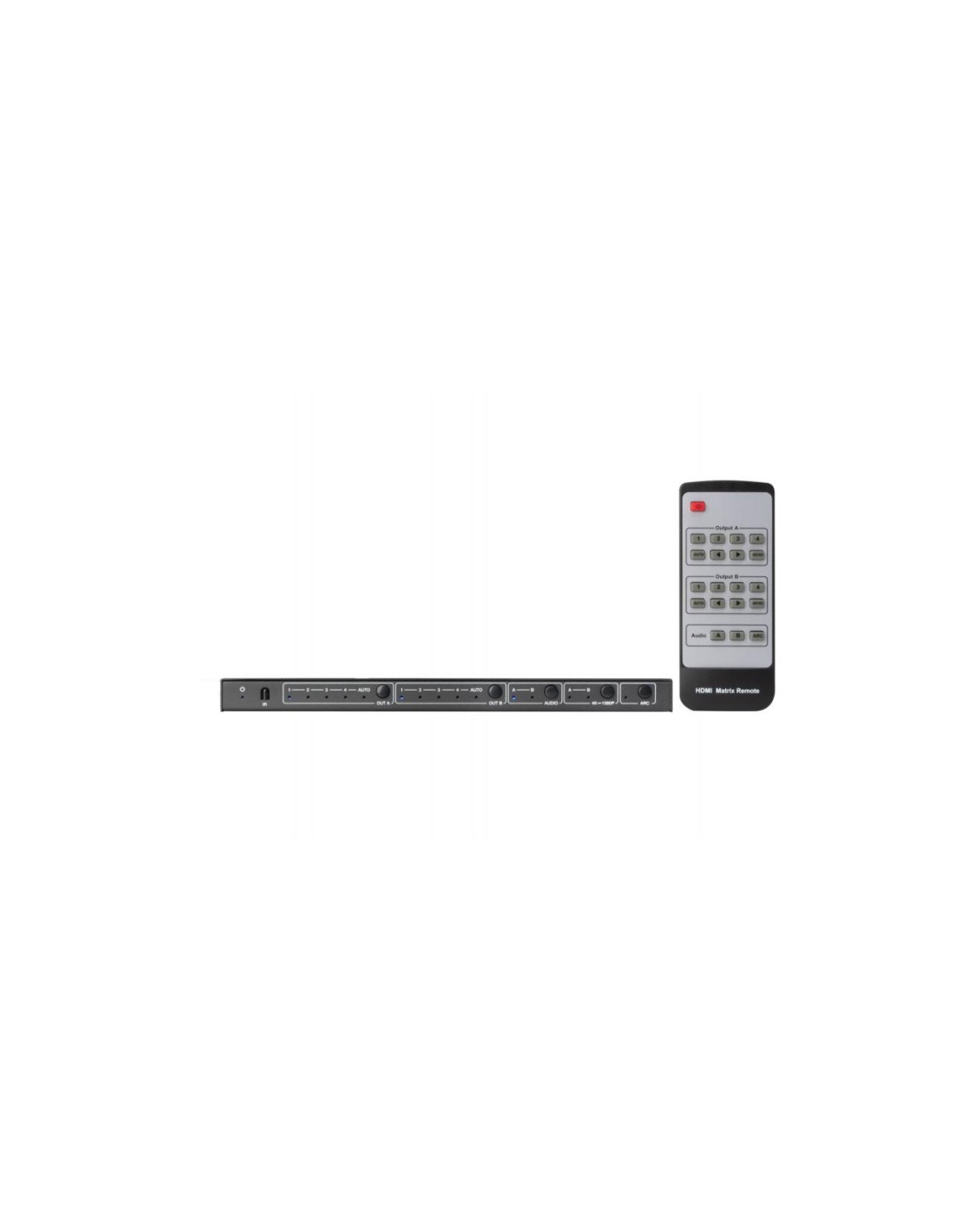 CARACTERÍSTICAS | Matriz HDMI 4 x 2. Resolución UHD 4K@60Hz y menores. Ancho de banda 18 Gbps. Compatible con HDR. Función EDID, selecciona manualmente la resolución óptima para todas las TV. Función DOWN-SCALING para transformar resoluciones de 4K a Full HD 1080p. Extractor de audio digital y analógico de salida HDMI seleccionada. Mando a distancia. | |