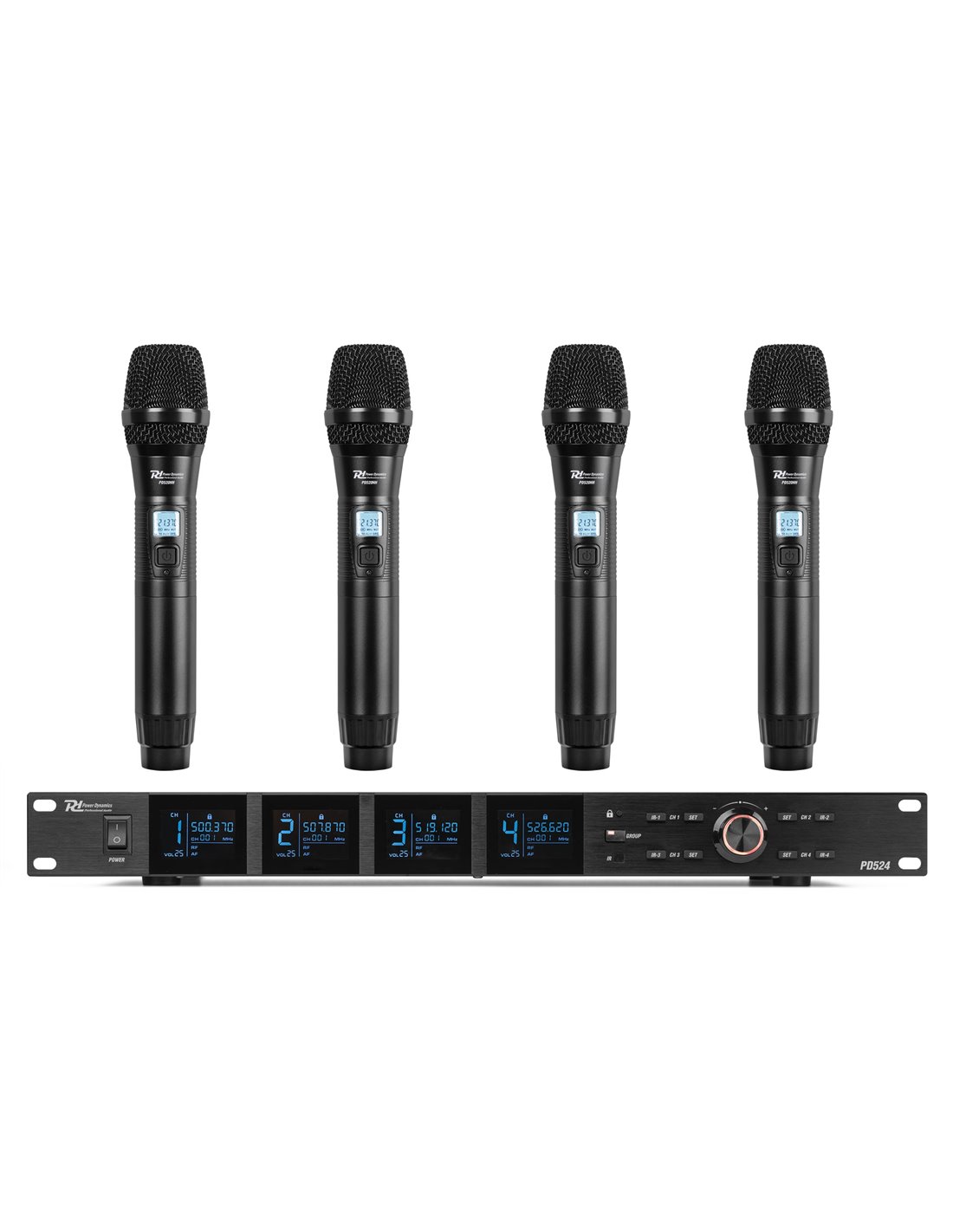 El PD524 es un sistema de micrófono inalámbrico profesional equipado con 4x 100 canales y está diseñado para actuaciones o eventos más grandes. El receptor con pantallas LCD dinámicas y claras garantiza una transmisión sin interferencias, junto con el silenciador de alta calidad y el sintetizador PLL. El sistema de micrófono PD524 funciona en la banda de 500-530 MHz y es adecuado para voces, presentaciones, formación y otras aplicaciones de megafonía.