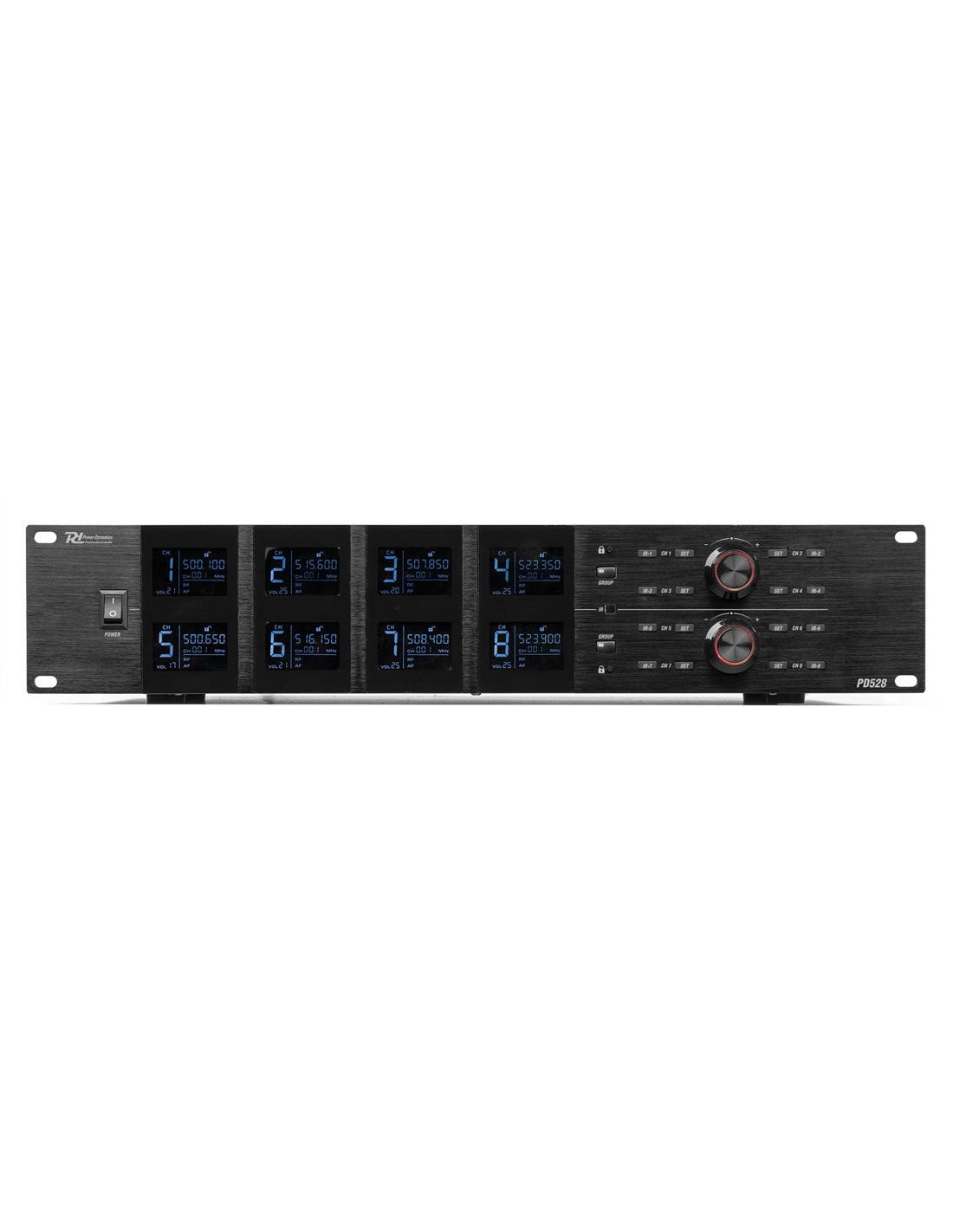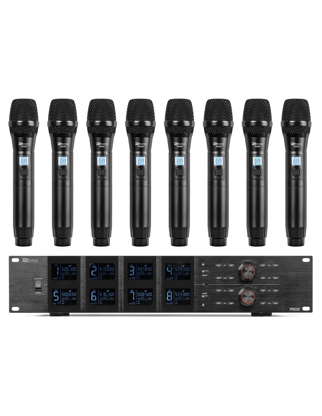 El PD528 es un sistema de micrófono inalámbrico profesional equipado con 8x 100 canales y está diseñado para actuaciones o eventos más grandes. El receptor con pantallas LCD dinámicas y claras garantiza una transmisión sin interferencias, junto con el silenciador de alta calidad y el sintetizador PLL. El sistema de micrófono PD528 funciona en la banda de 500-530 MHz y es adecuado para voces, presentaciones, formación y otras aplicaciones de megafonía.