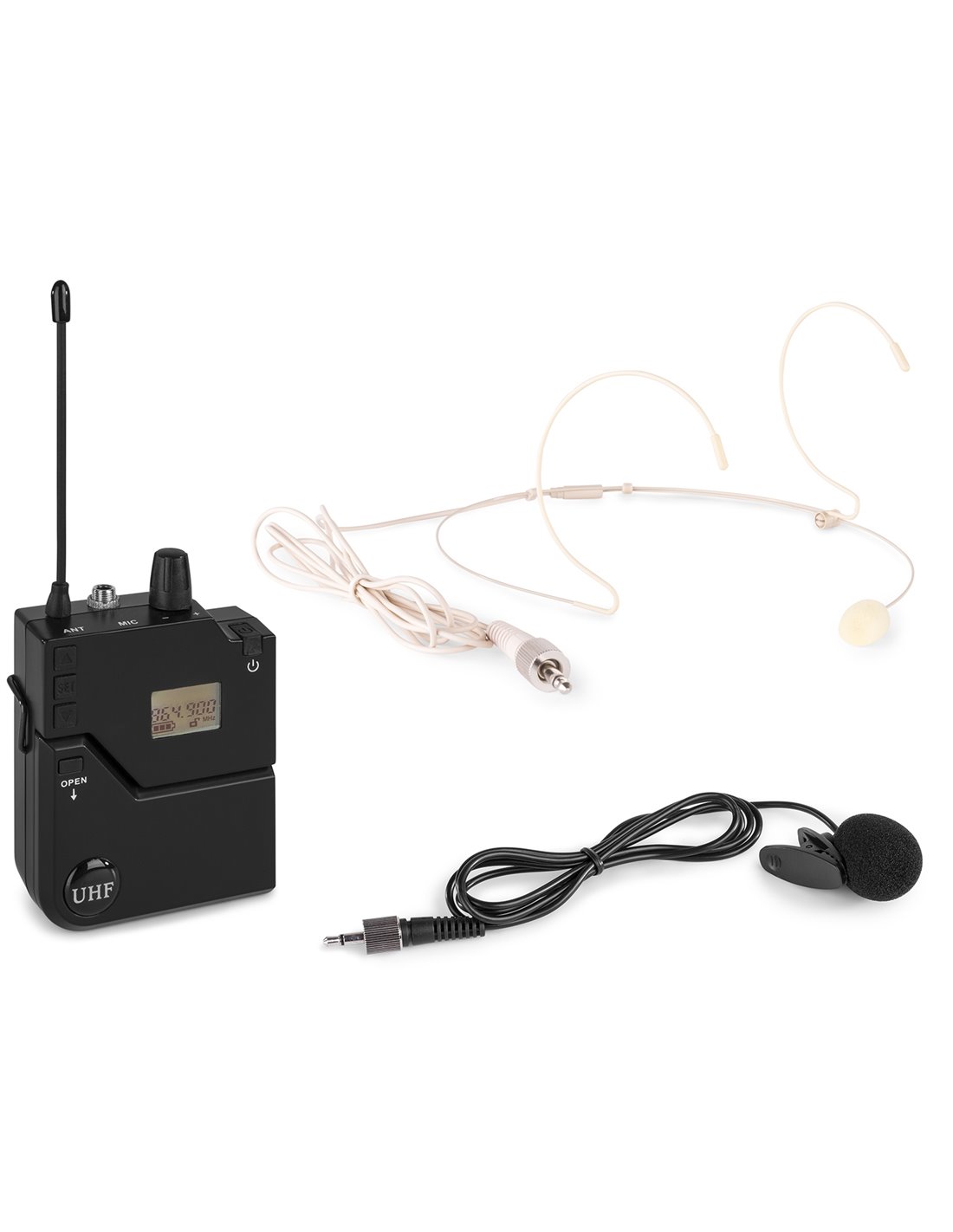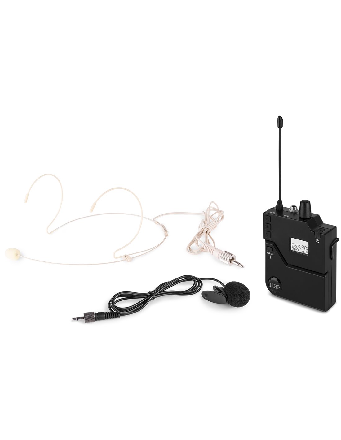 Petaca transmisora para inalambricos de la serie PD632 UHF. Equipada con sistema IR para seleccion de canal. Ideal para aplicaciones manos libres, vocaistas, presentadores, etc. Incluye micro de solapa y micro de cabeza en color piel.