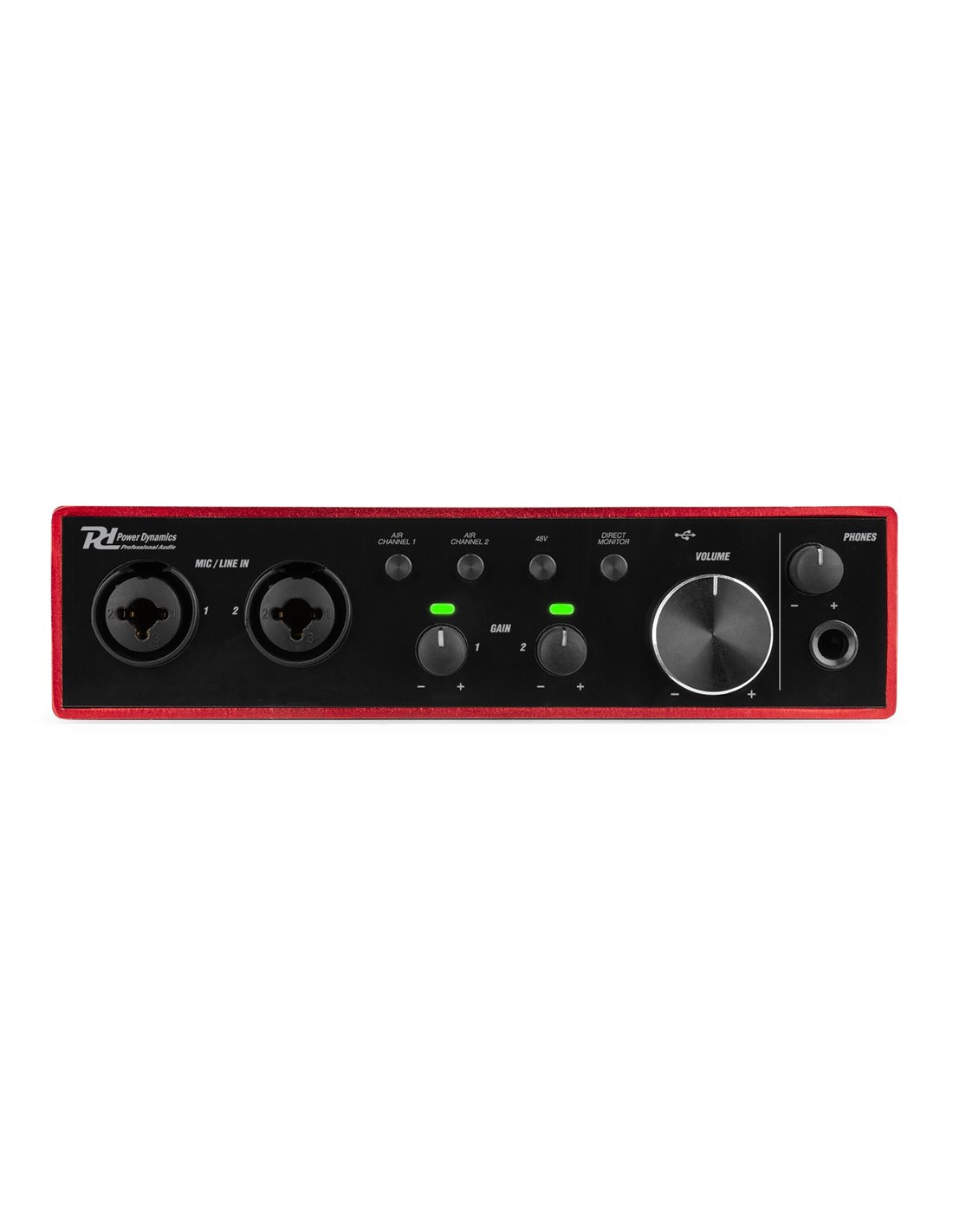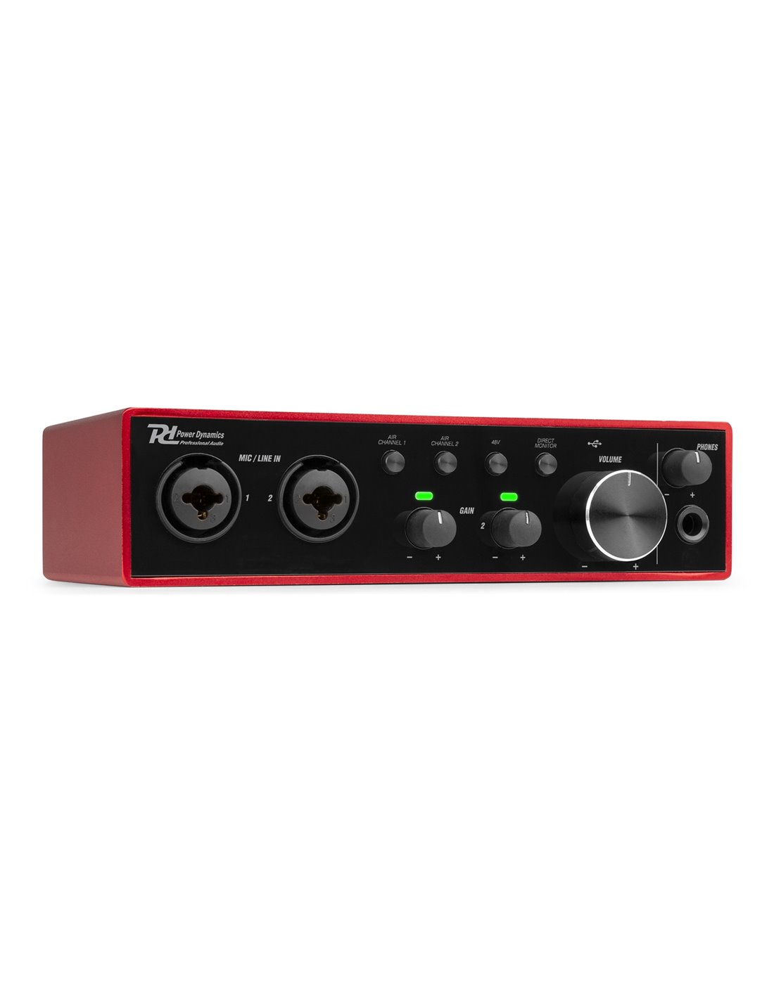 Con el PDX-22 tienes una interfaz de audio que te permite grabar el sonido de múltiples instrumentos simultáneamente. Puede crear grabaciones de micrófono claras y de alta calidad gracias a los 2 preamplificadores conmutables. Puede grabar sonido a niveles altos sin perder calidad, ya que la interfaz de audio proporciona un amplio margen de maniobra. Utilizando las entradas de línea balanceadas, puede capturar el sonido de sintetizadores y cajas de ritmos. Puede optar por conectar 2 instrumentos mono o 1 instrumento estéreo al PDX22.