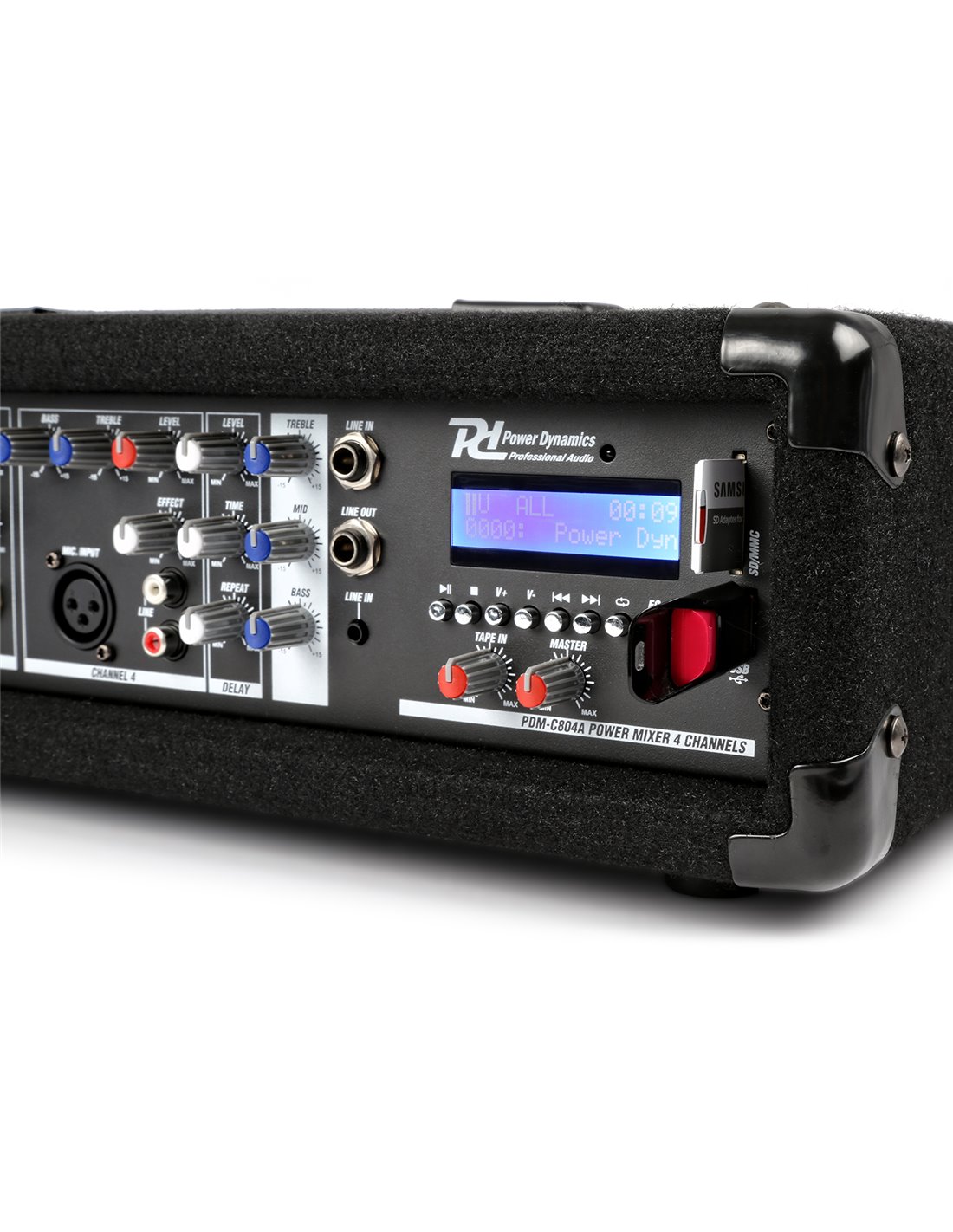 Este mezclador de 4 canales con amplificador es versatil para infinidad de aplicaciones como PA en directo, DJ, musicos, grupos y otras aplicaciones de PA. Cada entrada tiene control de graves y agudos asi como nivel de ganancia por canal. El generador de echo integrado se ajusta en tiempo y repeticion y puede aplicarse en distinto nivel en cada canal. La unidad viene en una robusta carcasa que protege el mezclador durante el transporte y en su uso cotidiano.
