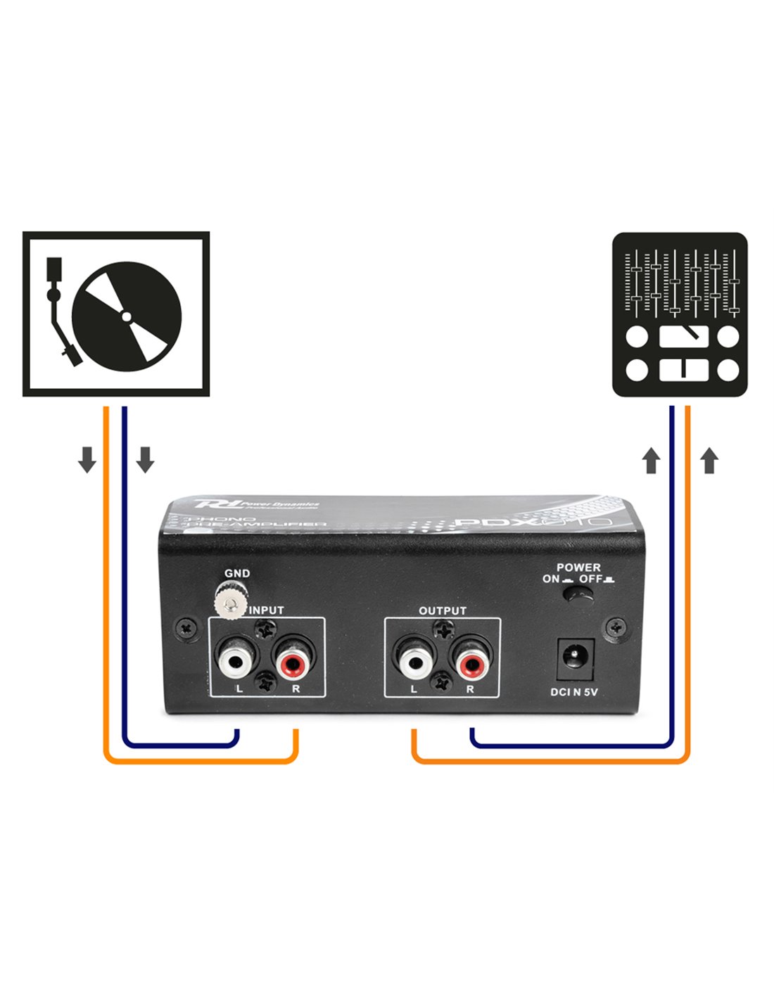 El PDX010 es un preamplificador de Phono para poder conectar giradiscos a una entrada linea de amplificador. El pre-amplificador con correccion RIAA amplifica la tenue señal de un giradiscos a la señal de linea. La correccion RIAA mejora totalmente la sonoridad del sistema. Con este previo phono usted puede volver a conectar su antiguo giradiscos a su nuevo amplificador..