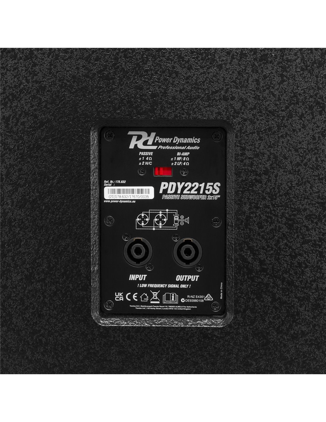 Tenga en cuenta: este subwoofer pasivo no tiene un filtro interno o crossover. Para un funcionamiento adecuado, recomendamos utilizar un sistema de gestión de altavoces/crossover.