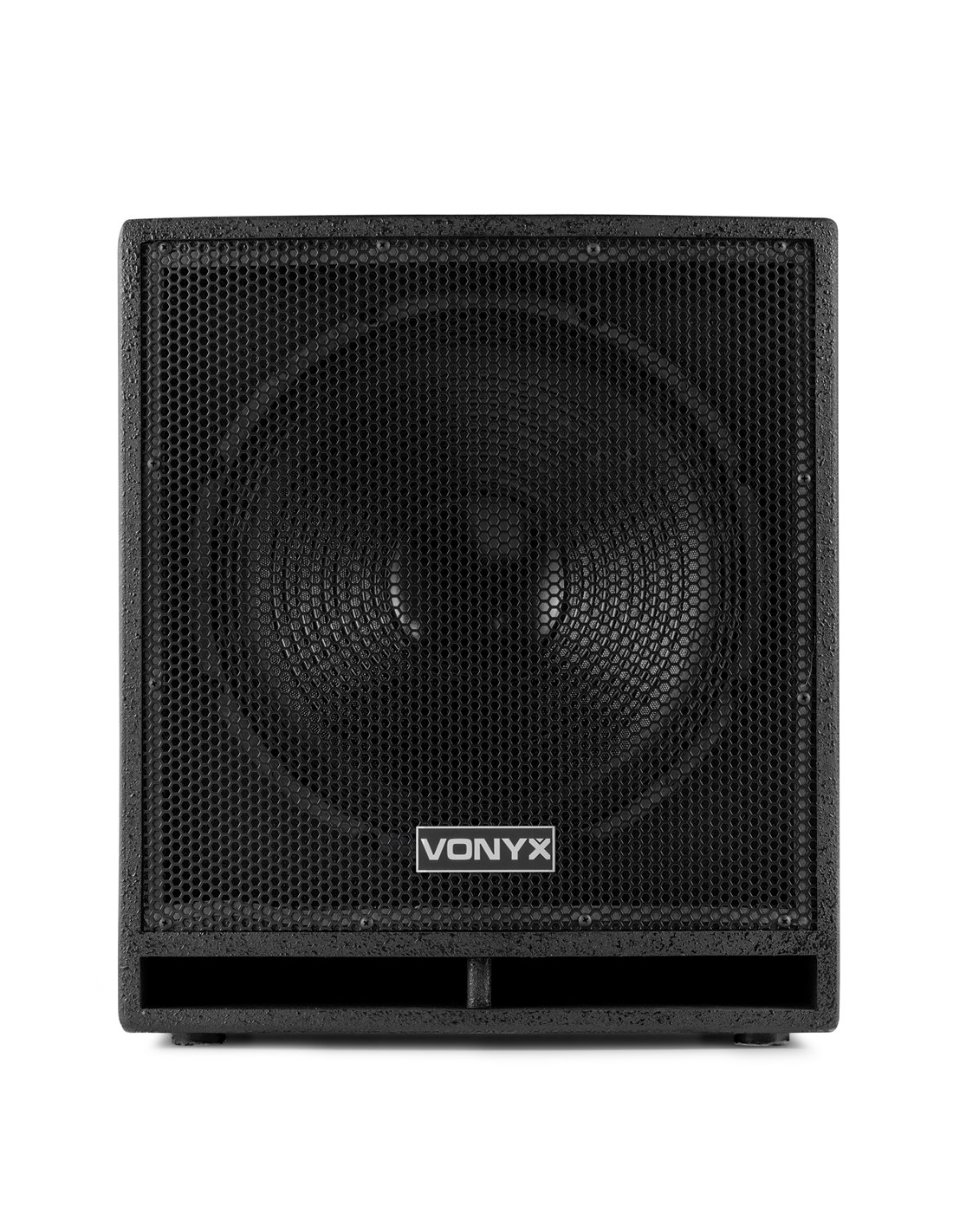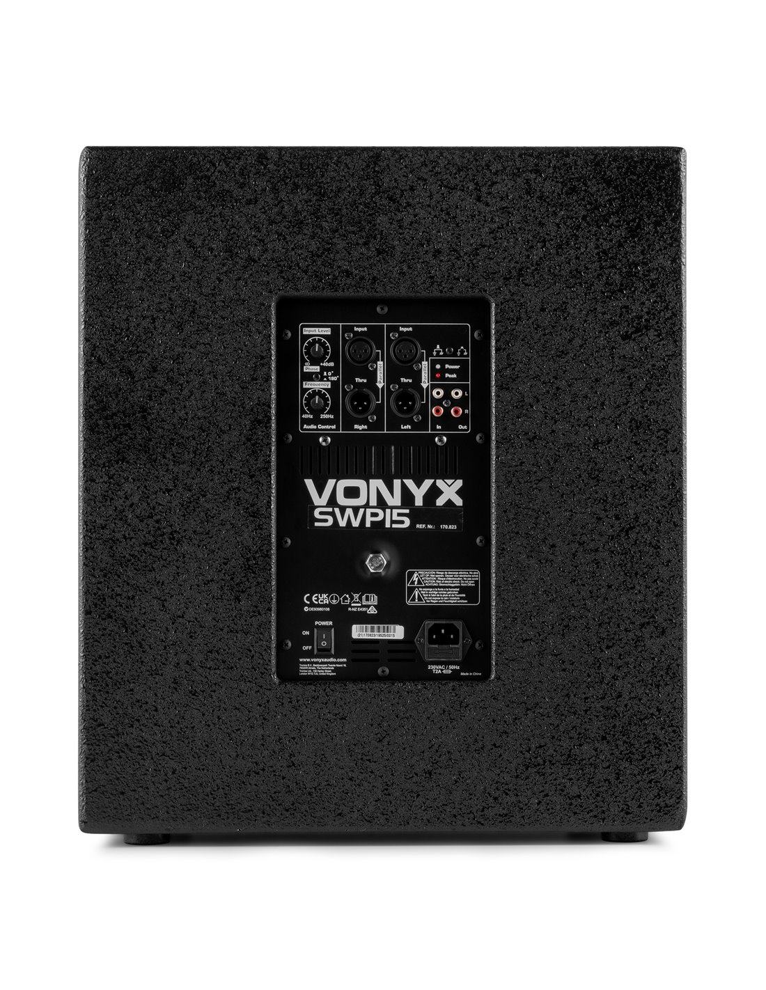 Subwoofer de 15" con filtro pasa bajos ajustable entre 40Hz y 250Hz. Incorpora amplificador de 800W con control de fase para sincronizar con los altavoces principales, reproduciendo unos graves profundos. Conexiones dobles IN/THRU para linkear a otro subwoofer.