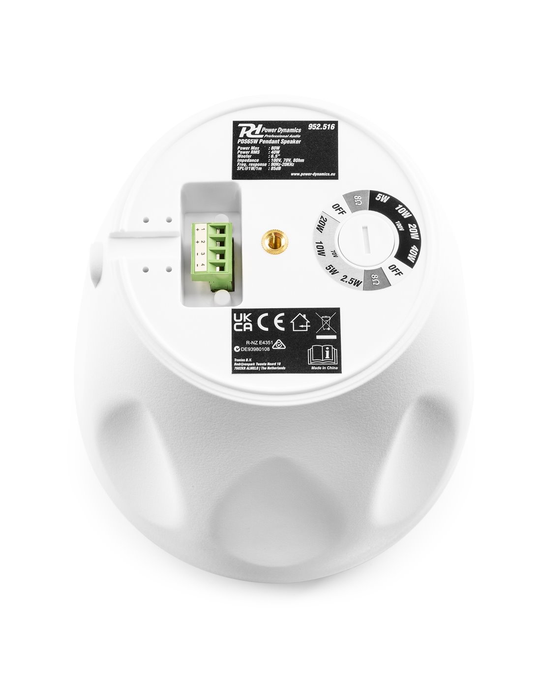 Los altavoces colgantes para interior/exterior PDS65 están diseñados para instalaciones suspendidas en el techo. Estos elegantes altavoces multifunción cuentan con un diseño coaxial de 2 vías, completado con un woofer de 6,5" y un tweeter de 1". También incluyen un transformador de línea de 70/100 V con cinco tomas de potencia, además de la opción de operación en baja impedancia (8 ohmios). La excelente respuesta de frecuencia y potencia de salida son ideales para la música ambiental en tiendas, restaurantes, bares, oficinas y lugares para eventos. El PDS65 viene completo con un kit para colgar de 3 m, un soporte de pared y otros accesorios de montaje.