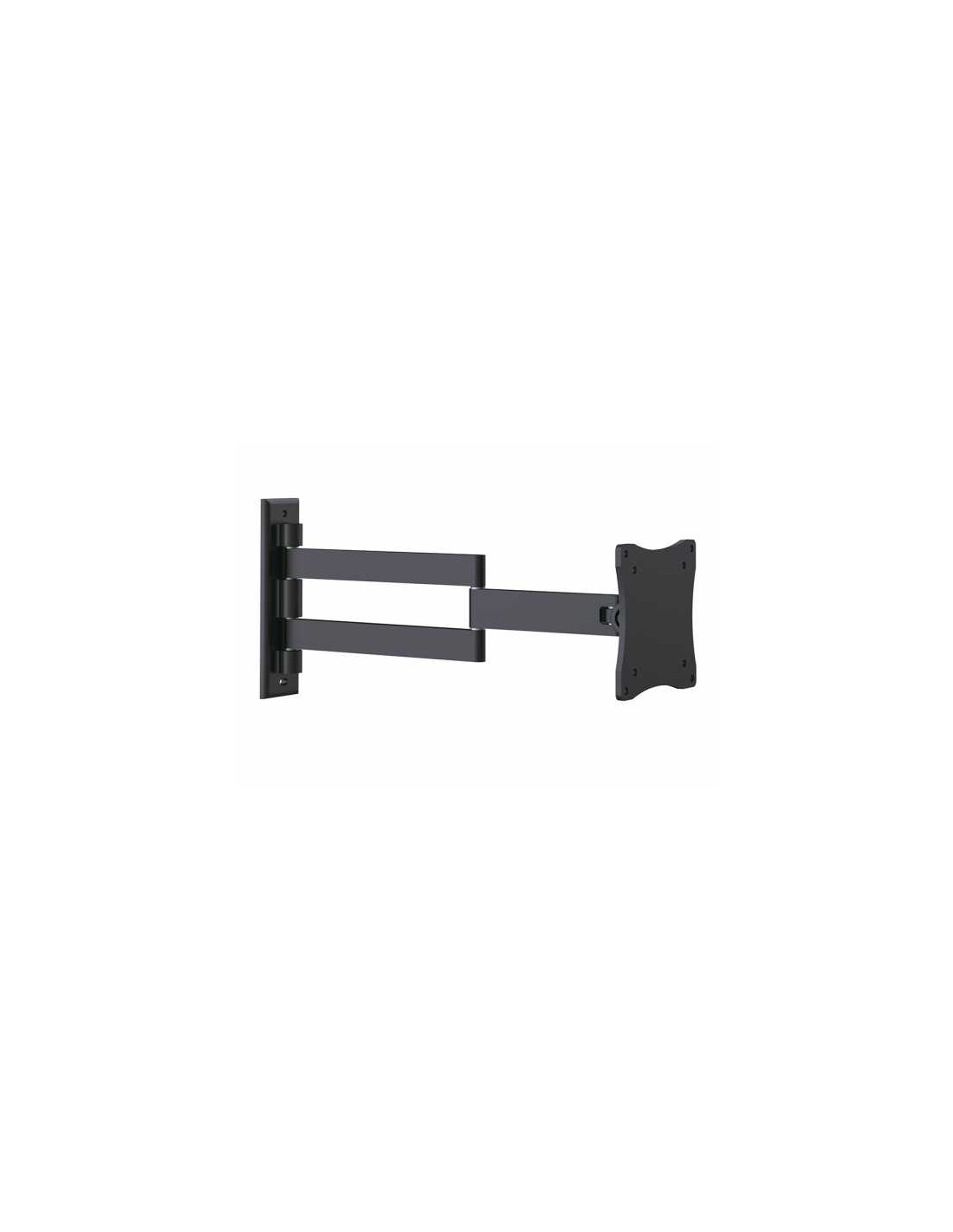 Soporte TV orientable STV-648N: versatilidad y resistencia en tu hogar El STV-648N es un soporte de pared orientable para televisores de entre 13” y 27” (33 a 68,5 cm), diseñado para ofrecer flexibilidad y resistencia en la instalación de pantallas de distintas dimensiones. Su acabado en color negro y su estructura ligera de 0,85 kg lo convierten en un soporte funcional y discreto, ideal para cualquier estilo decorativo. Ajuste preciso y fácil instalación Amplio rango de movimiento: Con una orientación horizontal de hasta 180º e inclinación vertical de ±70º, el soporte STV-648N permite ajustar la pantalla según las necesidades del espacio. Instalación sencilla y segura: Incluye una plantilla de instalación, nivel de burbuja, tacos y tornillos para asegurar una instalación rápida y sin complicaciones. Compatibilidad VESA: Compatible con las medidas VESA más comunes (75x75, 100x100), soportando televisores de hasta 15 kg. Medidas: La distancia a la pared es ajustable entre 5 cm y 37 cm en posición vertical. La placa para el televisor tiene dimensiones de 11,5 x 11,5 cm, mientras que la placa de la pared mide 4,5 x 17 cm. ¿Por qué elegir el soporte STV-648N? Este soporte es la elección ideal para usuarios finales que buscan una solución resistente, versátil y adaptable para sus televisores. Su diseño orientable y su construcción robusta lo hacen perfecto para garantizar la estabilidad y la seguridad del equipo audiovisual en cualquier hogar.