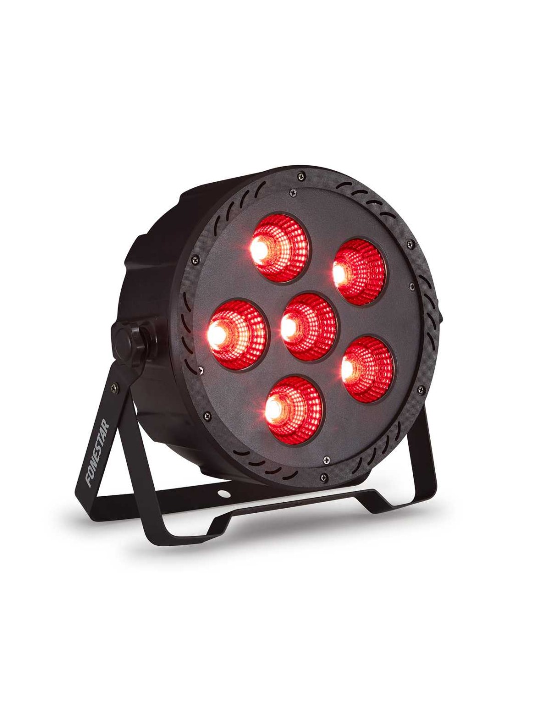 CARACTERÍSTICAS | Foco PAR plano RGB. Modo automático, modo estático, activación por sonido y modo maestro/esclavo. Ajuste de colores, dimmer, estrobo y velocidad de variación ajustable mediante controladora DMX. Micrófono incorporado. | |