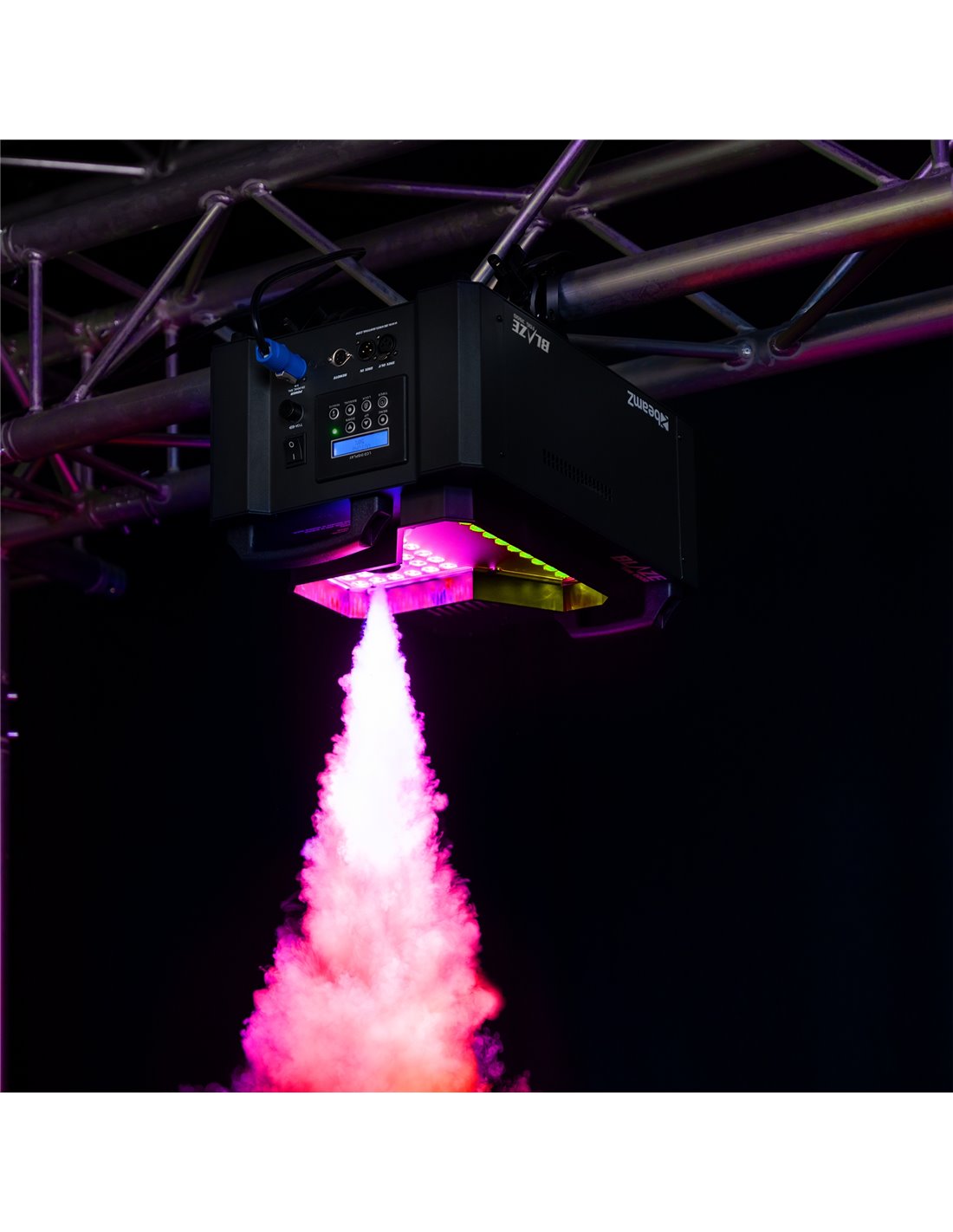 La serie Blaze es una gama de maquinas de humo profesionales que ponen humo ahí donde se necesita! Estas máquinas de humo duraderas están equipadas con LEDs de alta potencia RGBW y además de usarse de forma estándar en horizontal, también pueden usarse en posición vertical gracias a su sistema de boquilla de fluido. Las máquinas Blaze pueden operar vía el panel de control integrado con display LCD o con el mando por cable suministrado e incluyen un elemento calefactor de alta calidad y tanque interno para el líquido. Gracias a la tecnología de paro instantáneo, se elimina el líquido de la boquilla reduciendo las salpicaduras y dando una salida de humo precisa. La nueva boquilla hace posible reducir en un 50% la posibilidad de quemar comparado con las maquinas estándar.