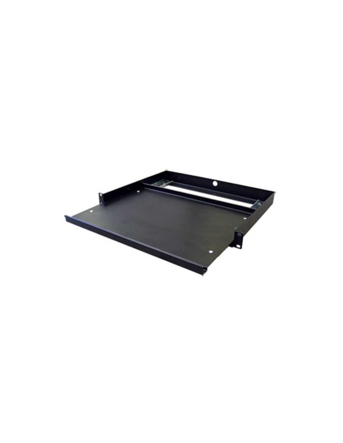 Bandeja metálica deslizante con sujeción frontal de 1 U para rack 19".Acabado negro.