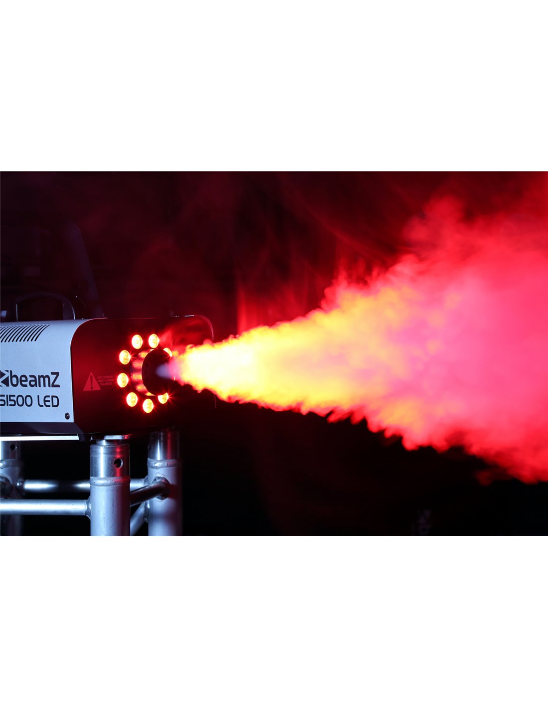 Potente maquina de Humo de 1500W DMX con leds 9x 3W RGB que producen un efecto brillante al combinar el humo con el color. Alto nivel de salida de humo complementado con control por temporizador, elemento calefactor de alta calidad y tanque interno para liquido de humo. Suministrado con mando a distancia.