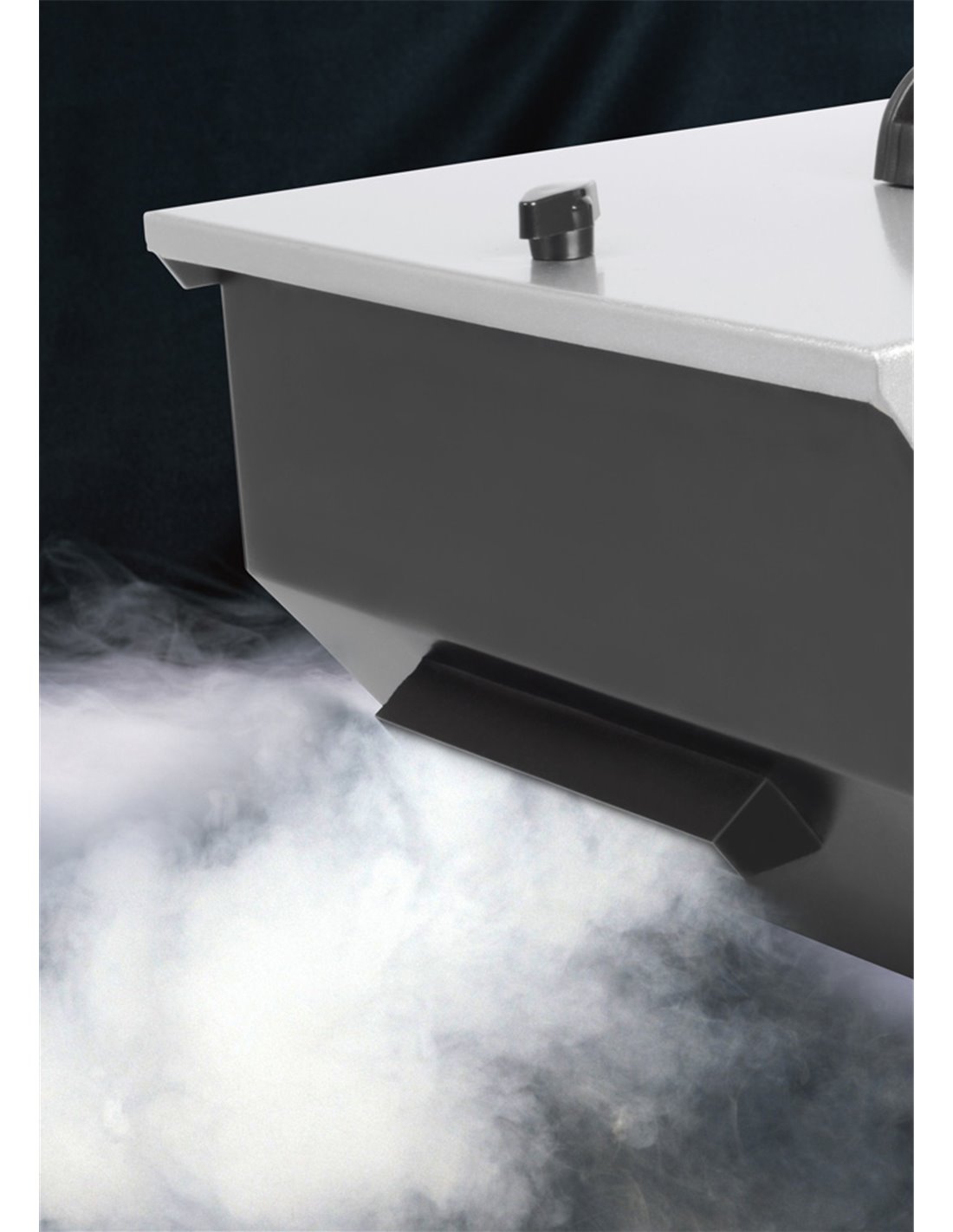 Maquina profesional de humo bajo de 1200W que utiliza hielo para enfriar el humo y mantenerlo a ras de suelo. Imprescindible en eventos teatrales, conciertos y directos. Equipado con un calefactor de alta calidad y gran tanque de liquido. Incluye control remoto.