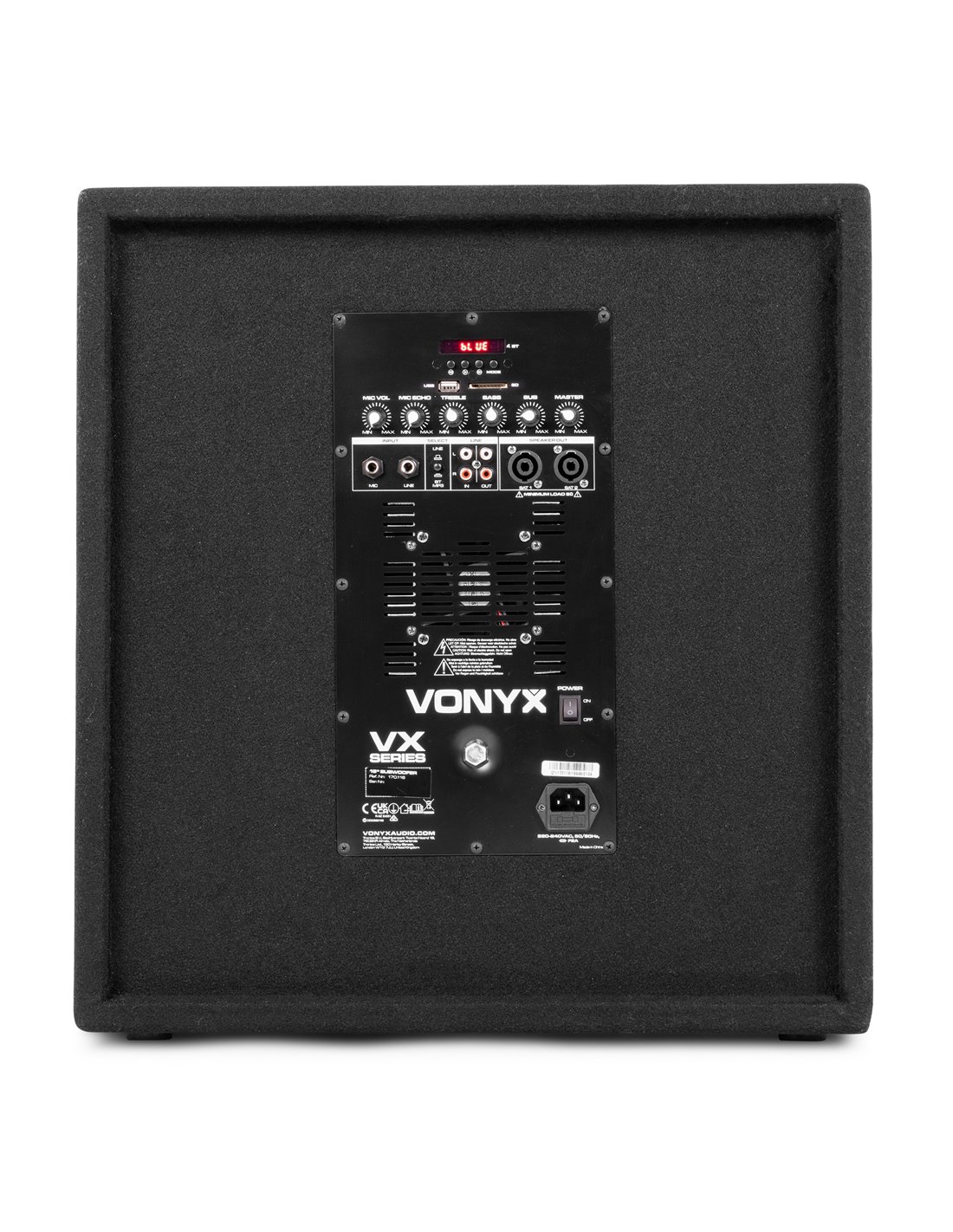 El VX1218BT es un potente juego de altavoces plug & play que ofrece un audio dinámico cristalino en combinación con unos graves potentes. Este conjunto compacto es fácil de configurar y fácil de transportar. Incluye un subwoofer de 18" y dos altavoces satélite de 12'' con agudos piezo. El receptor BT incorporado le permite simplemente transmitir su música de forma inalámbrica desde su smartphone o puede usar el reproductor de MP3 incorporado con ranuras USB y SD. Este conjunto de altavoces activos es adecuado para DJ móviles, espectáculos de karaoke, espectáculos de autocine, presentaciones, etc.